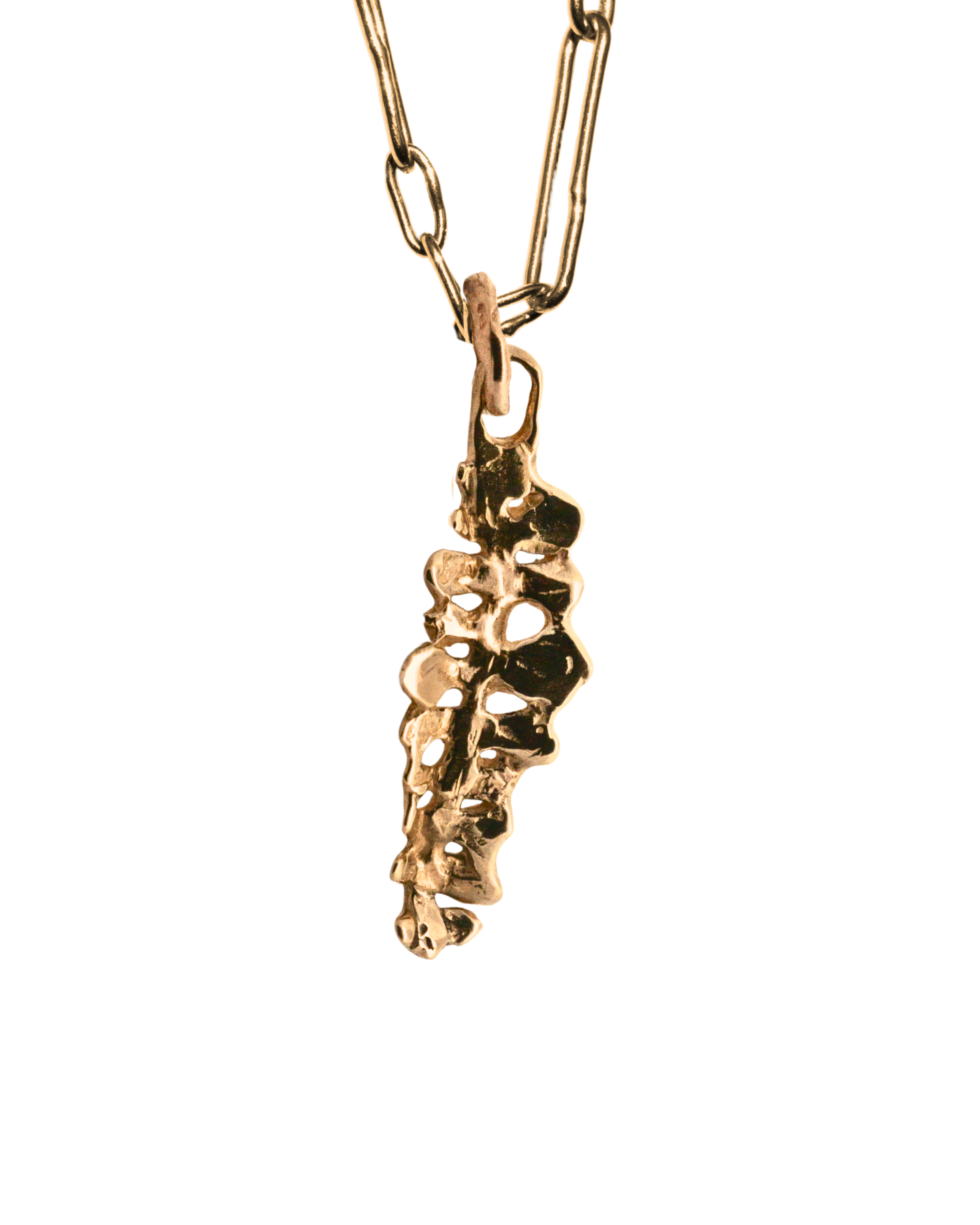 Hand carved and lost wax cast in 14k Fairmined gold.