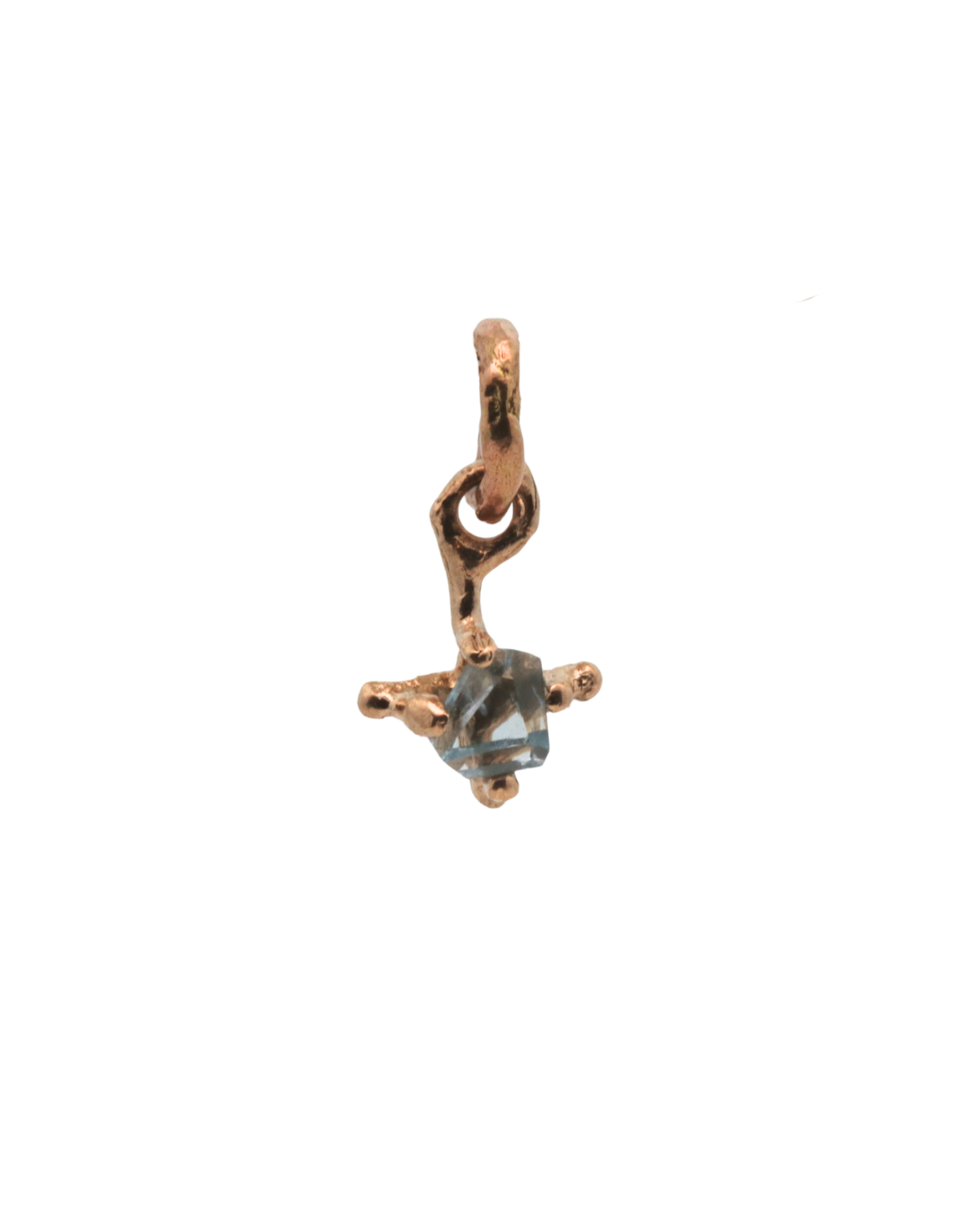 Hand-carved and lost wax cast in 14K Fairmined gold with hand-cut Aquamarine crystal.