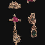 Crying eyes stud earrings with dotted halo lashes and bead set diamonds and falling sapphire tears.