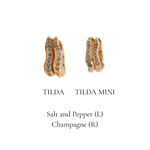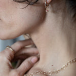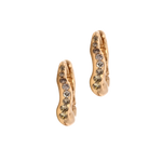 Wiggly little hoop earrings with pavé diamonds for everyday, everywhere wear. Live in them, sleep in them! Sturdy click to secure with built in hinge. Made with solid gold that won't wear off in the elements.  Easy to clean, repairable, and made for life - jewelry worth collecting.