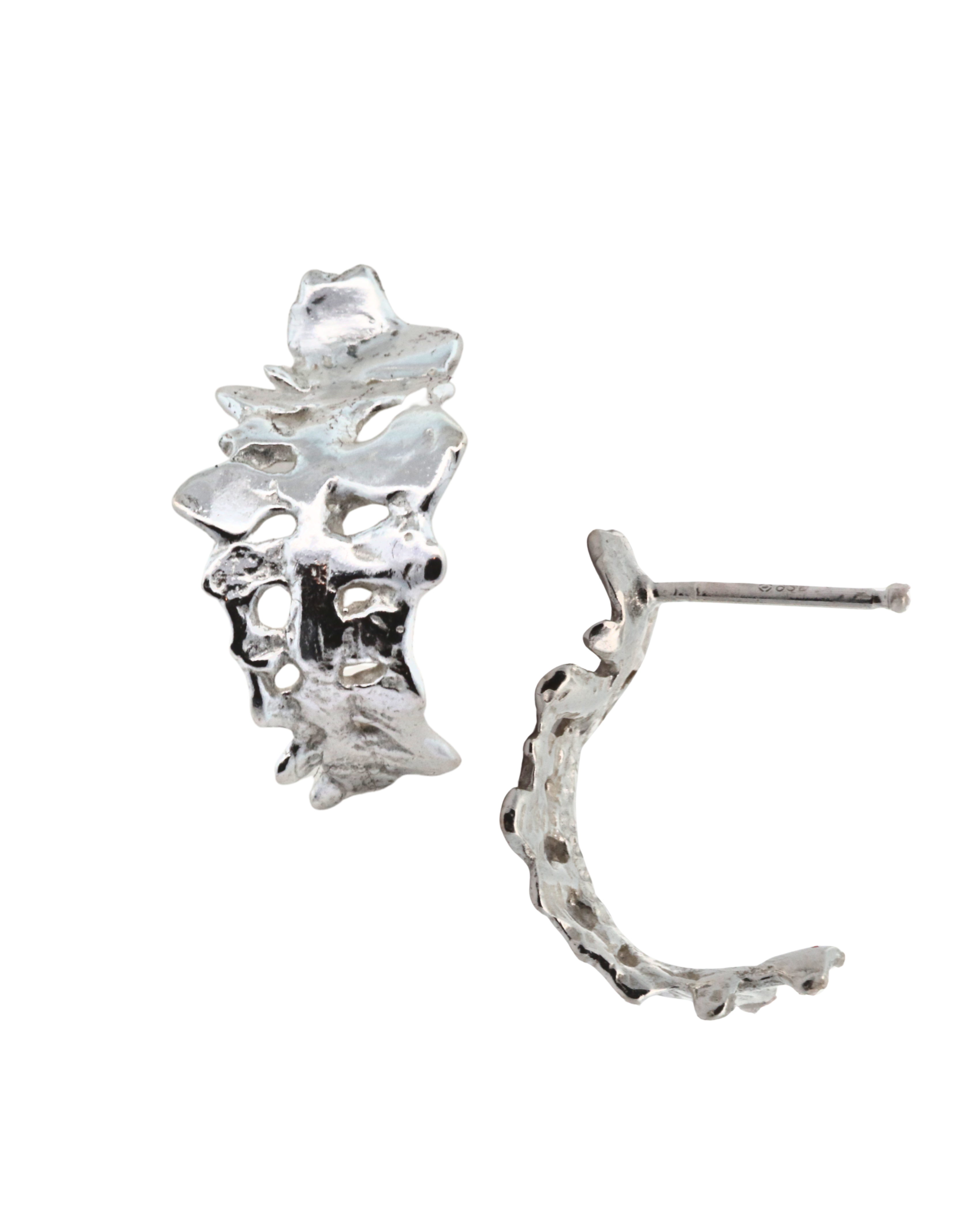 Medium sized hoops hand carved and lost wax cast in recycled sterling silver.