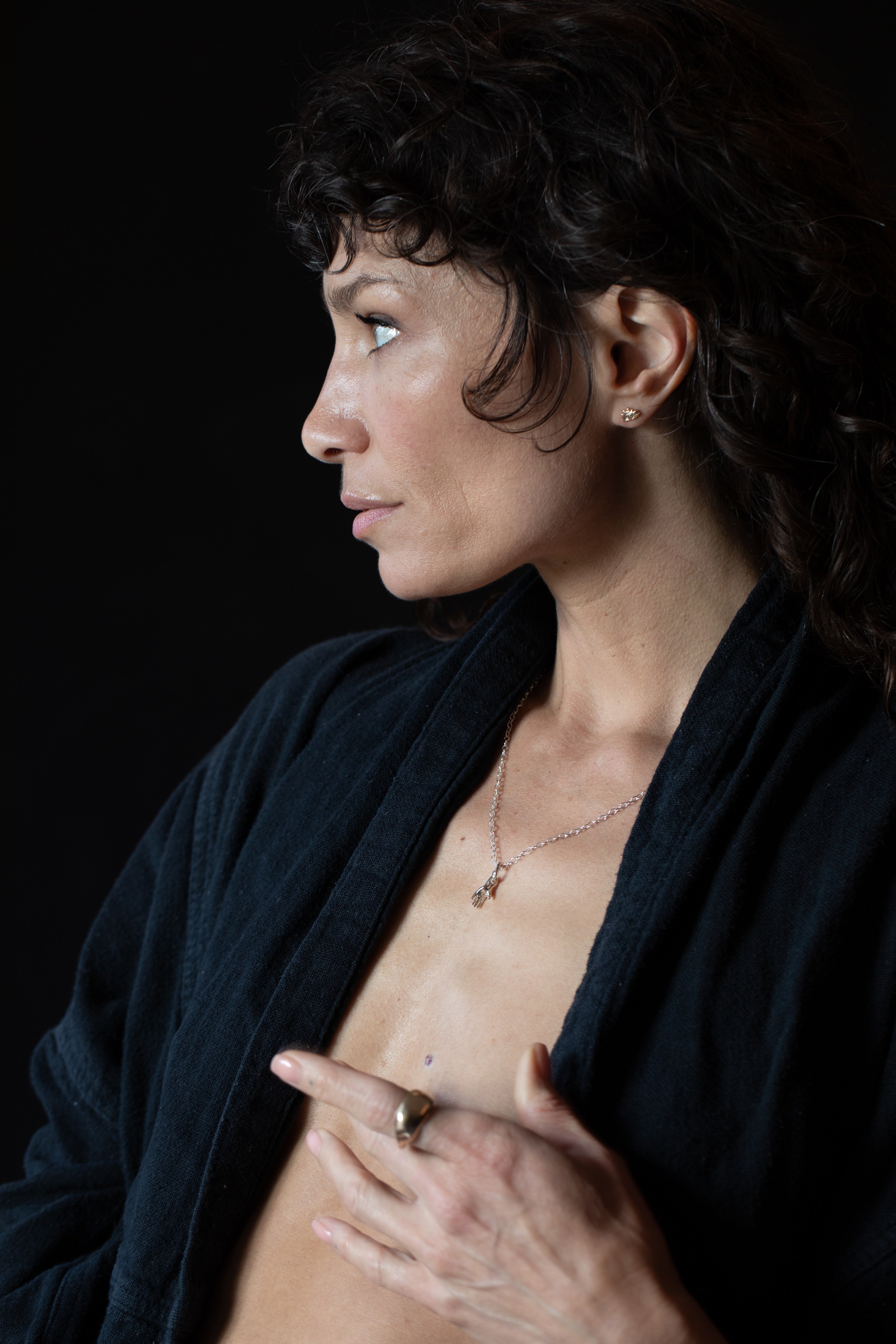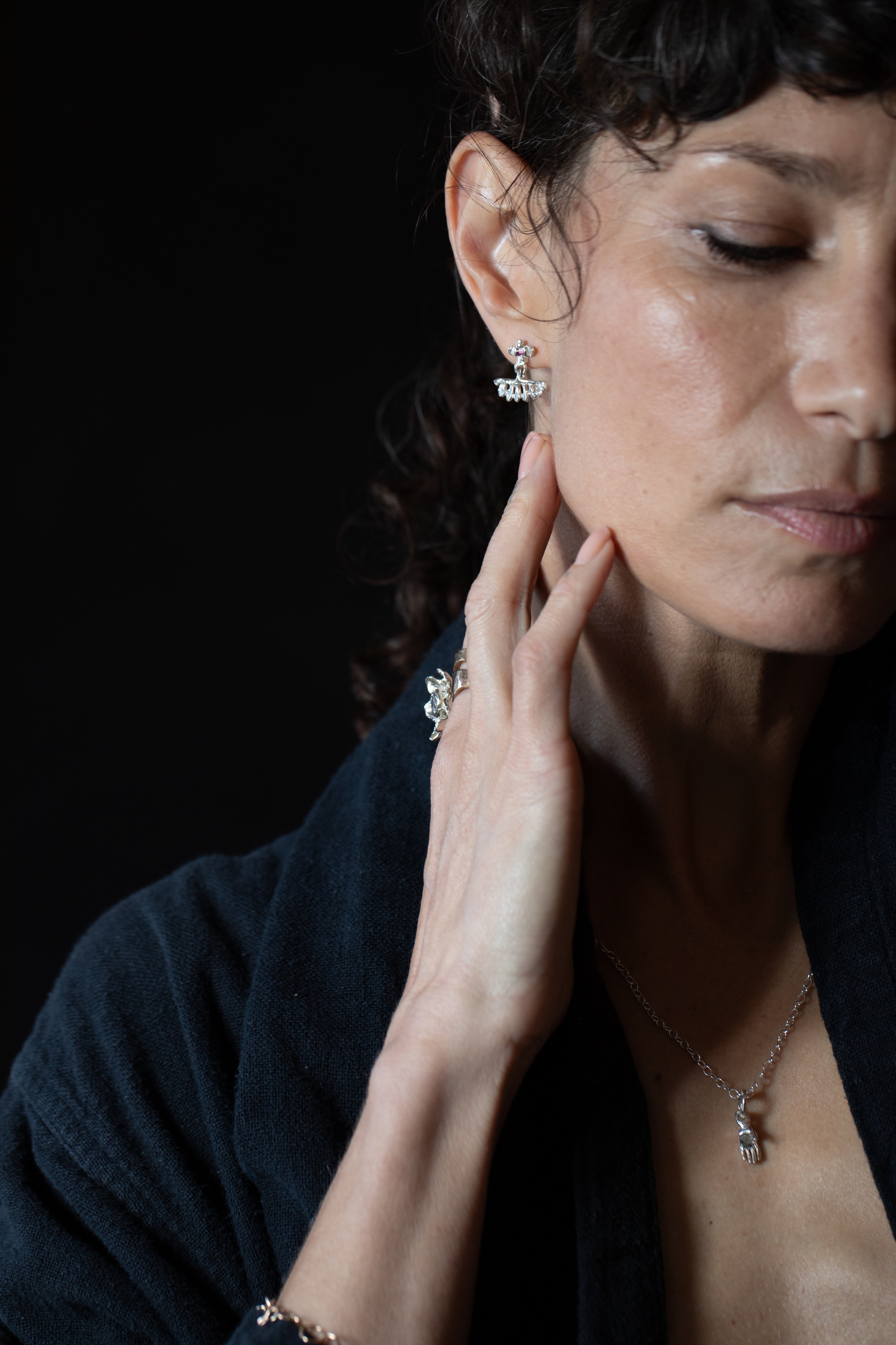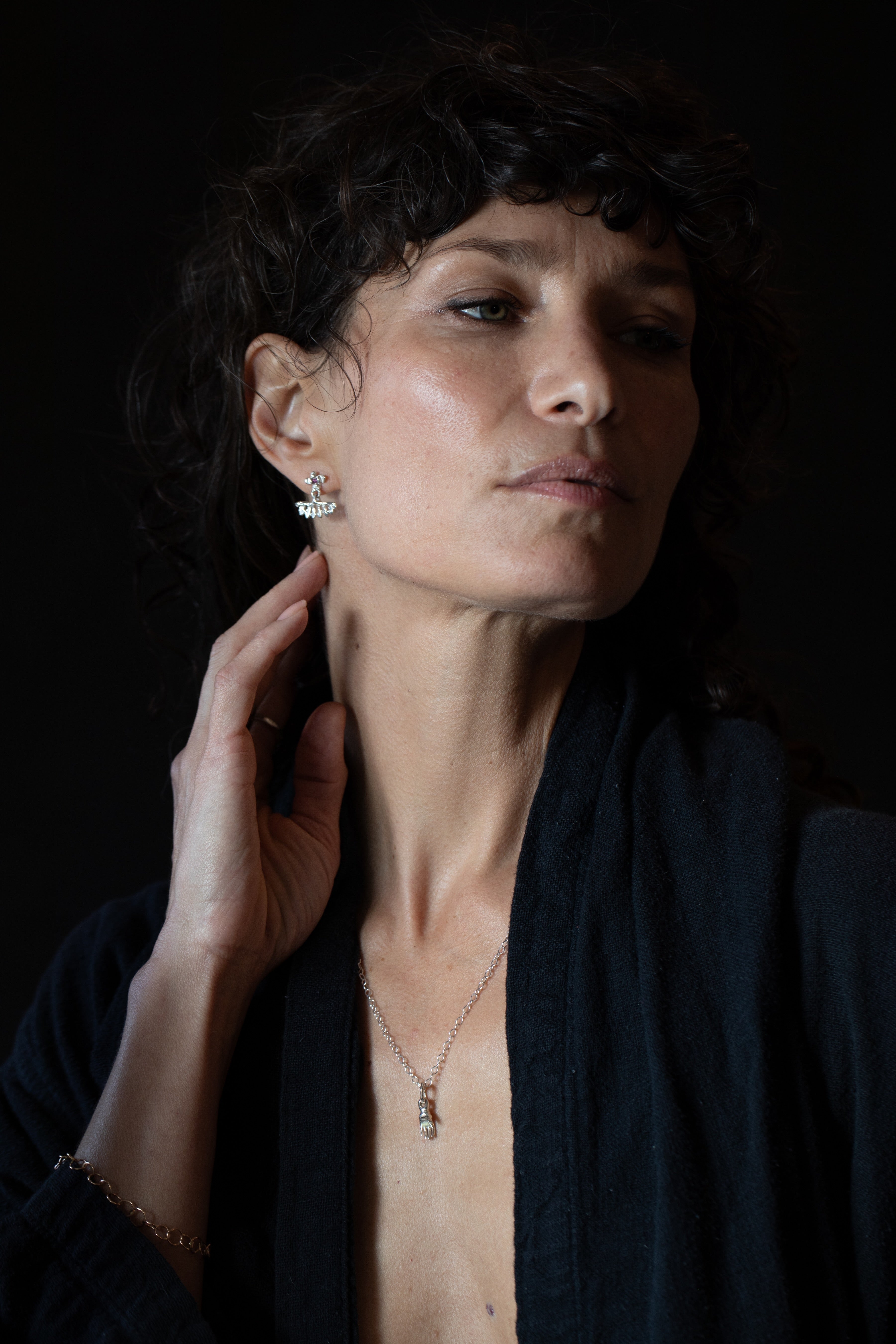 Necklace with a small hand pendant  in sterling silver