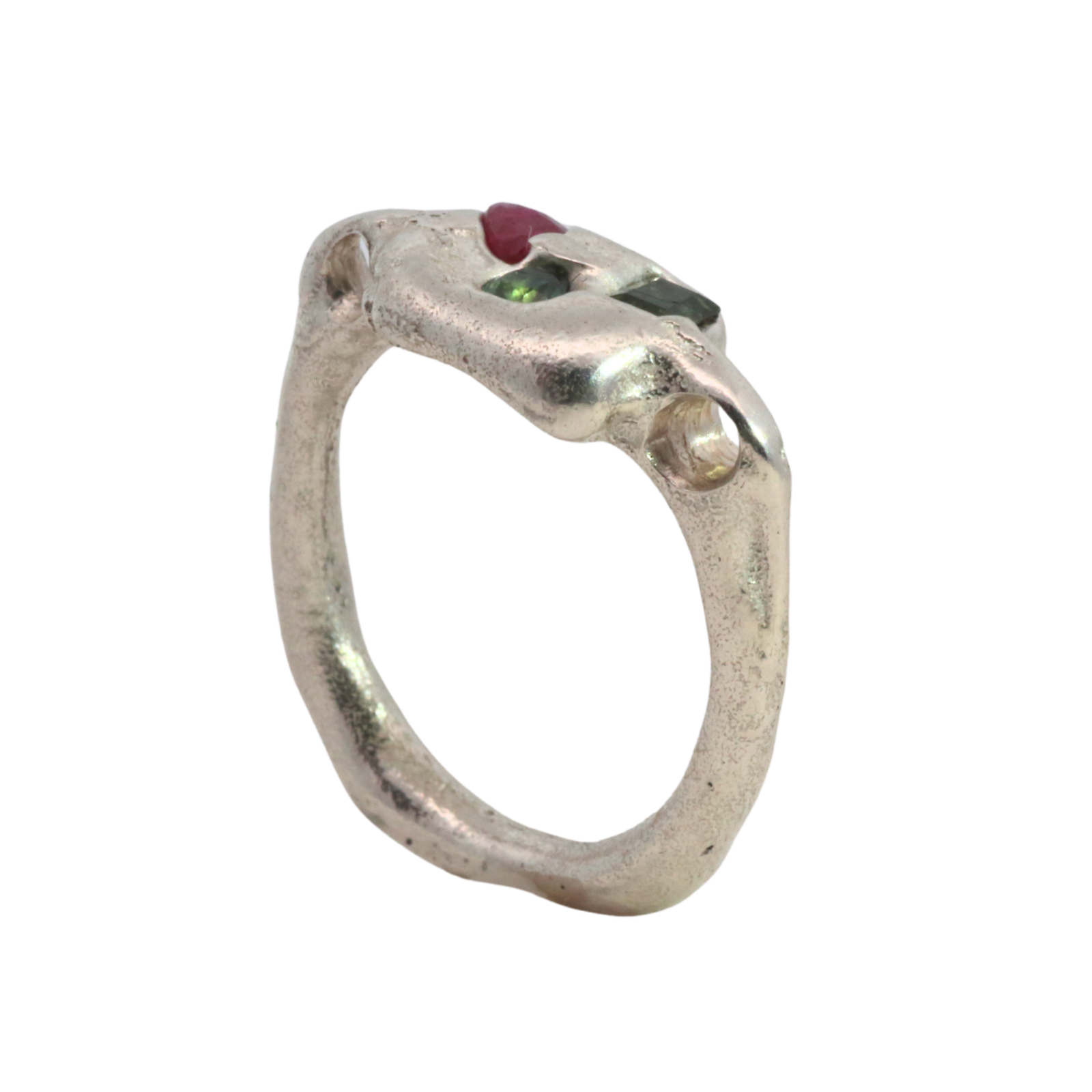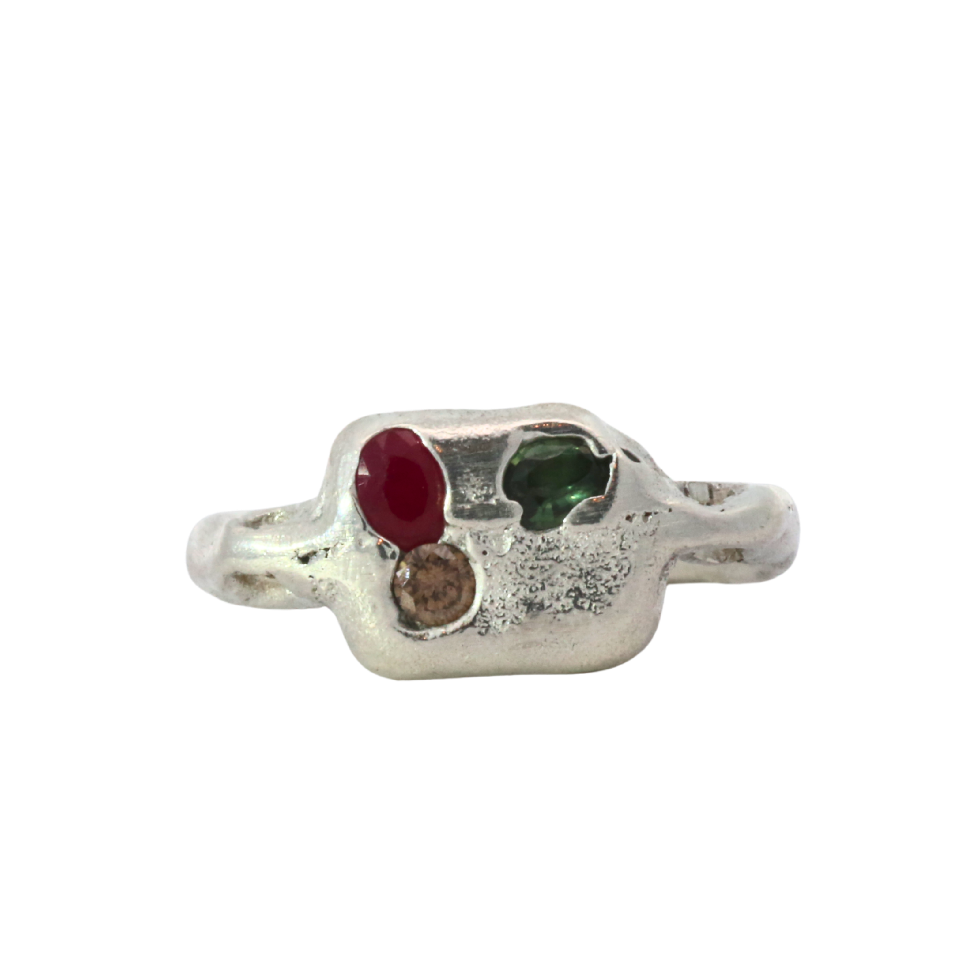 SEB Pinky Ring - Sterling Silver, Ruby Sapphires No. 012608