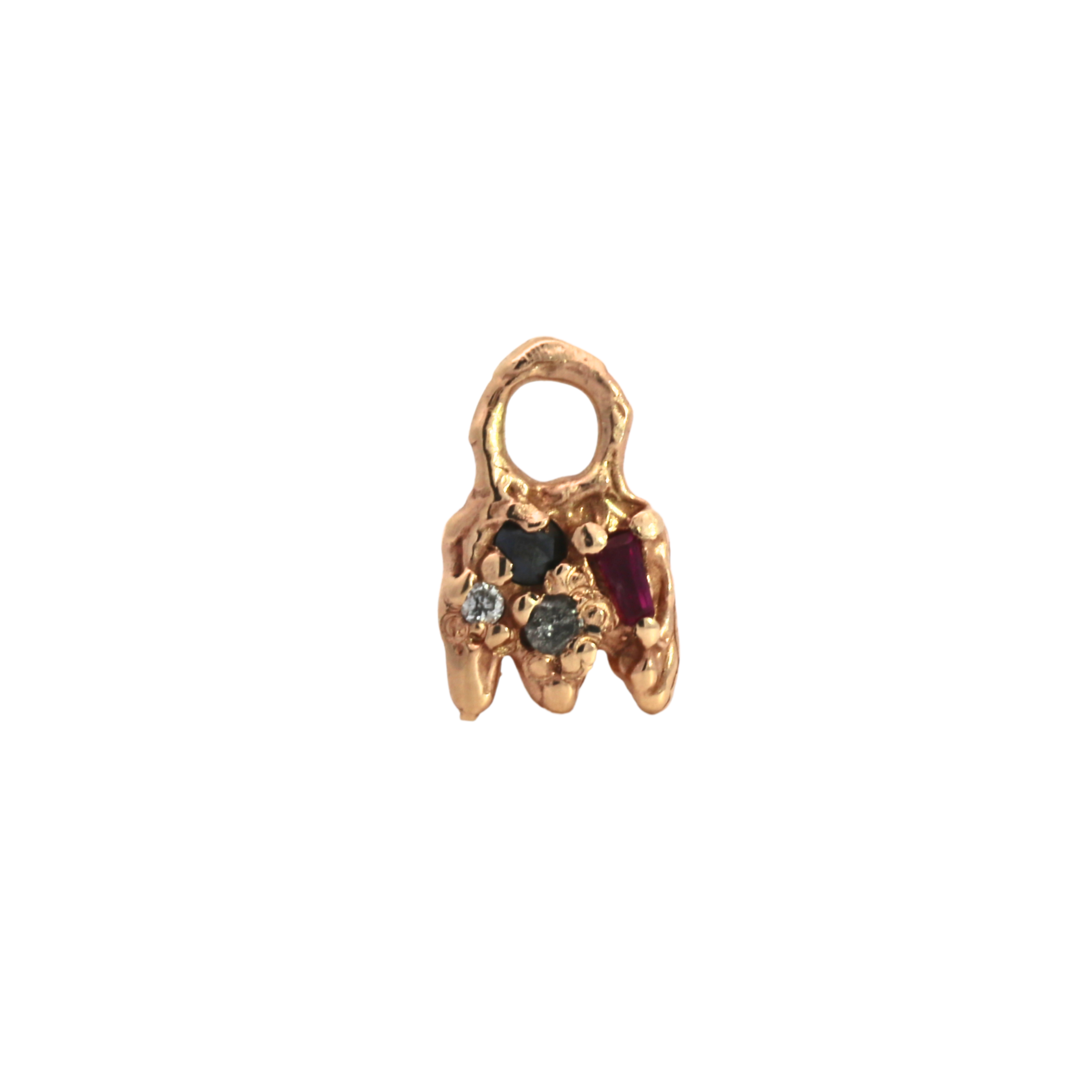 Heart Pendant Charm - Gold + Ruby + Diamonds
