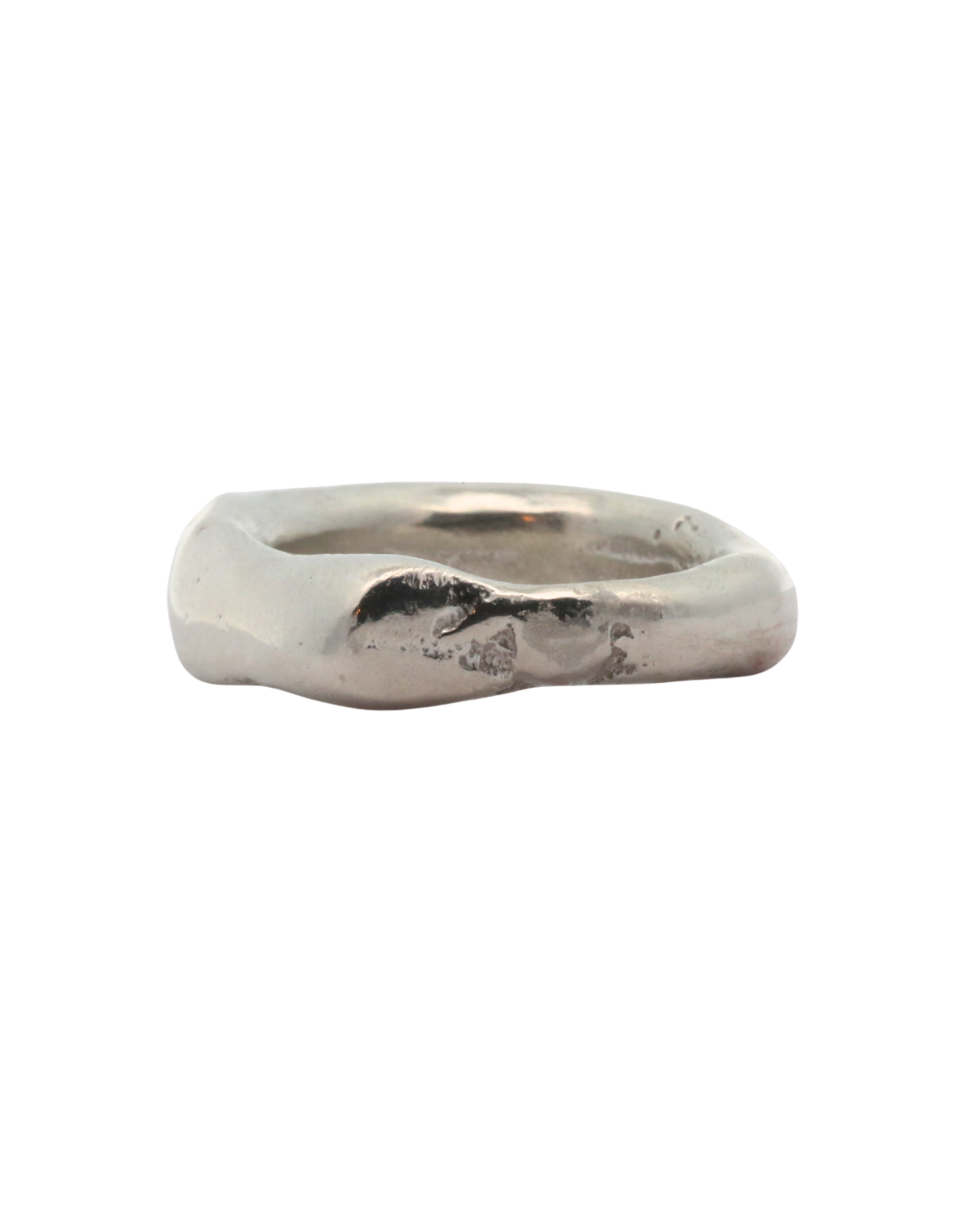 This collection of sand cast statement rings embraces the weight of metal and is solid sterling silver weighing approximately 17 grams. These rings are weighty and playful wearable sculptures, raw and unrefined, yet polished enough to evoke the coveted patina of time.