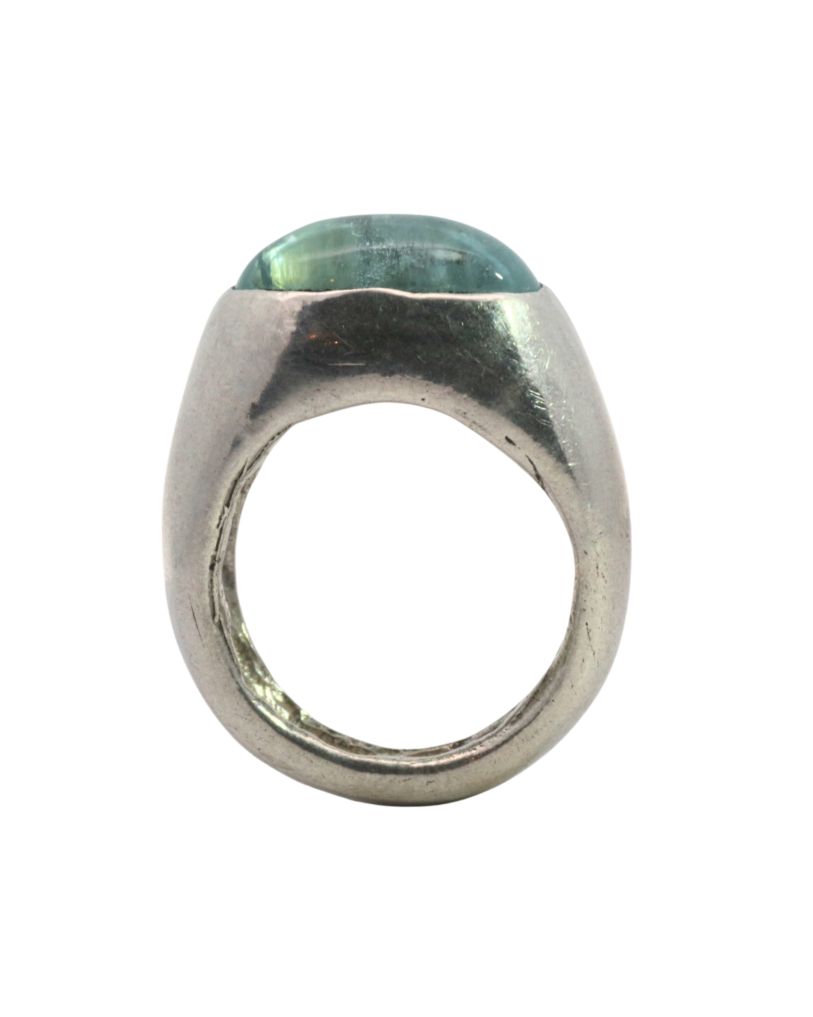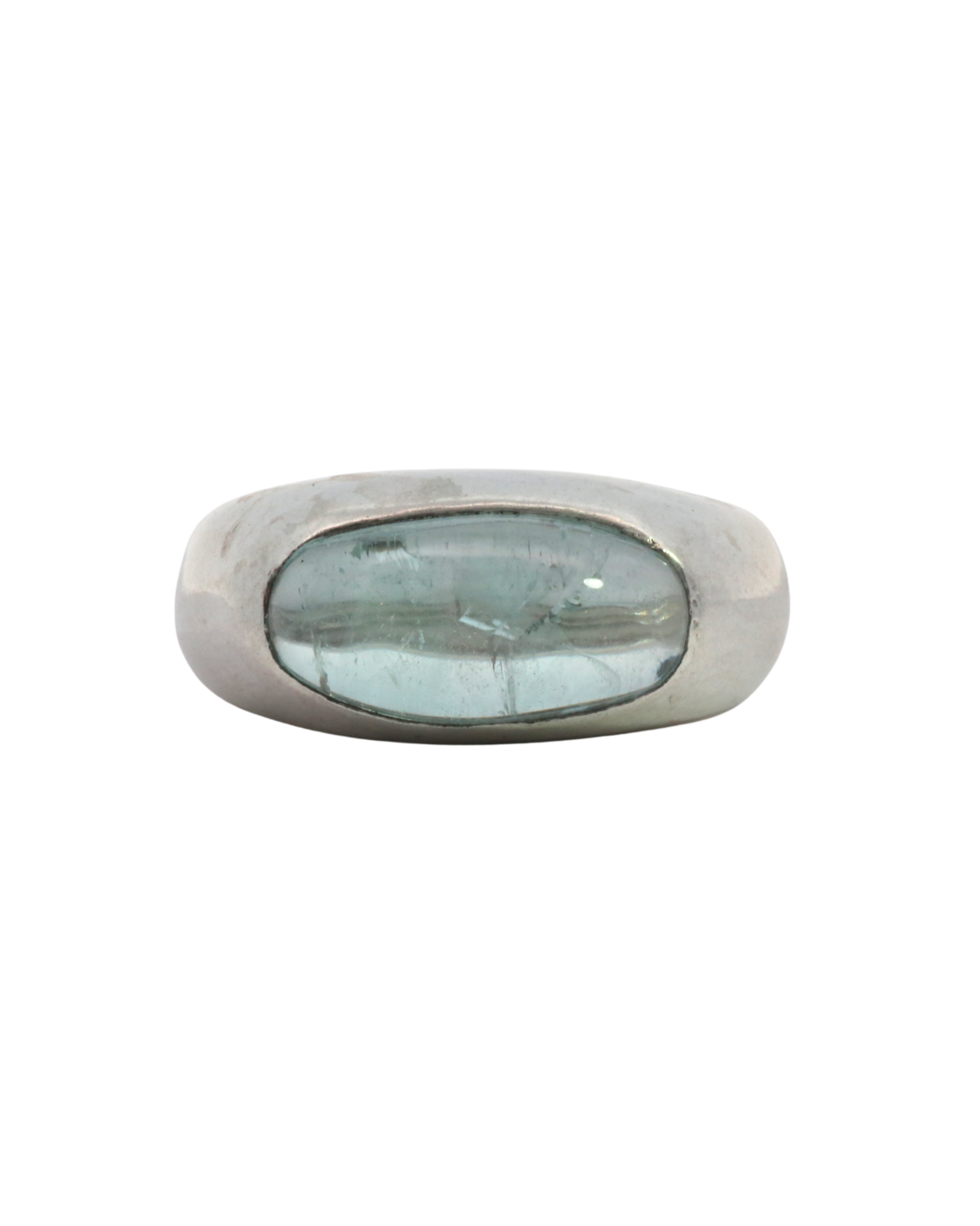 Dome ring with natural aquamarine.