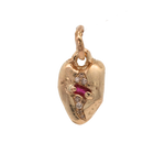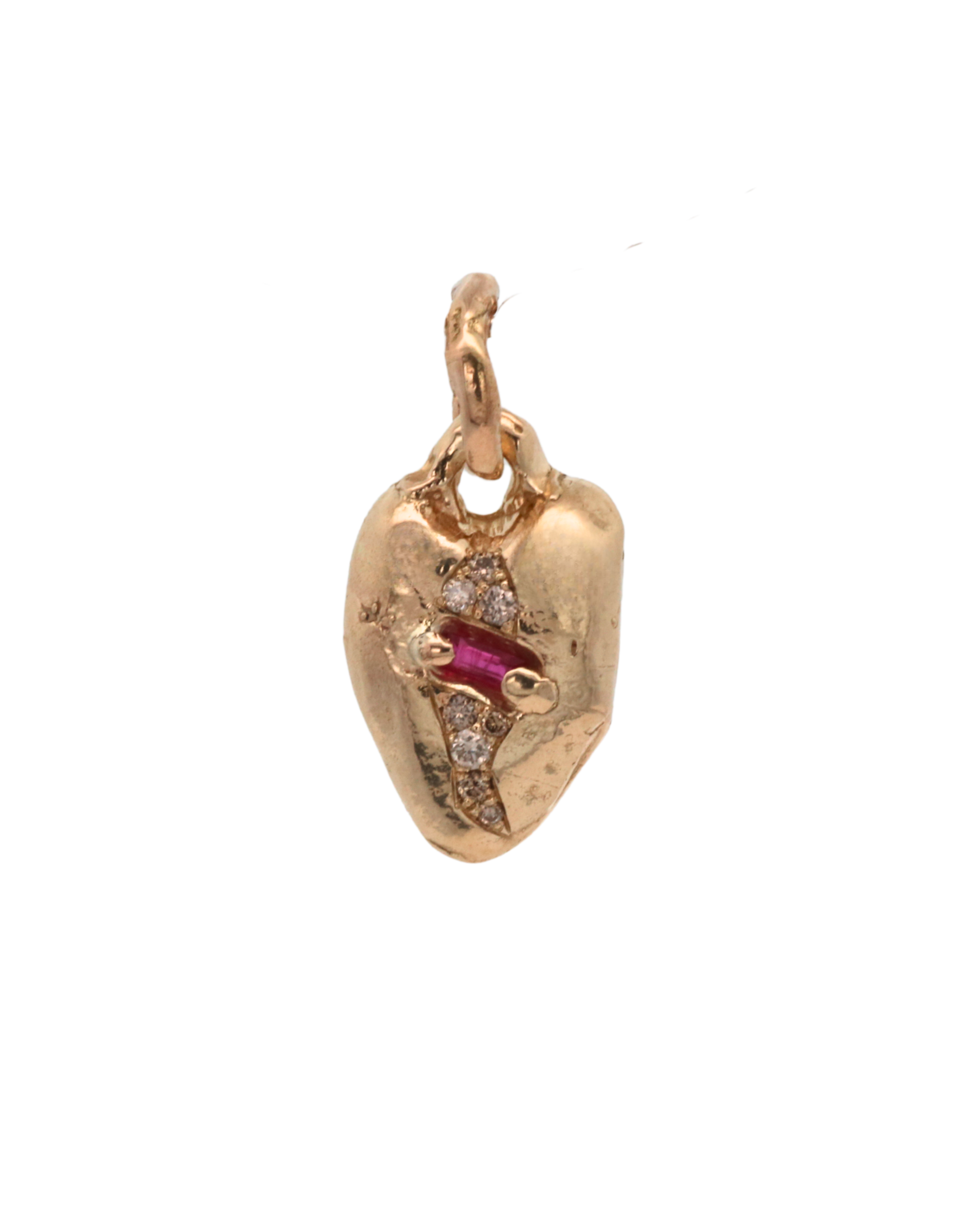 Heart Pendant Charm - Gold + Ruby + Diamonds