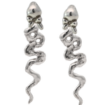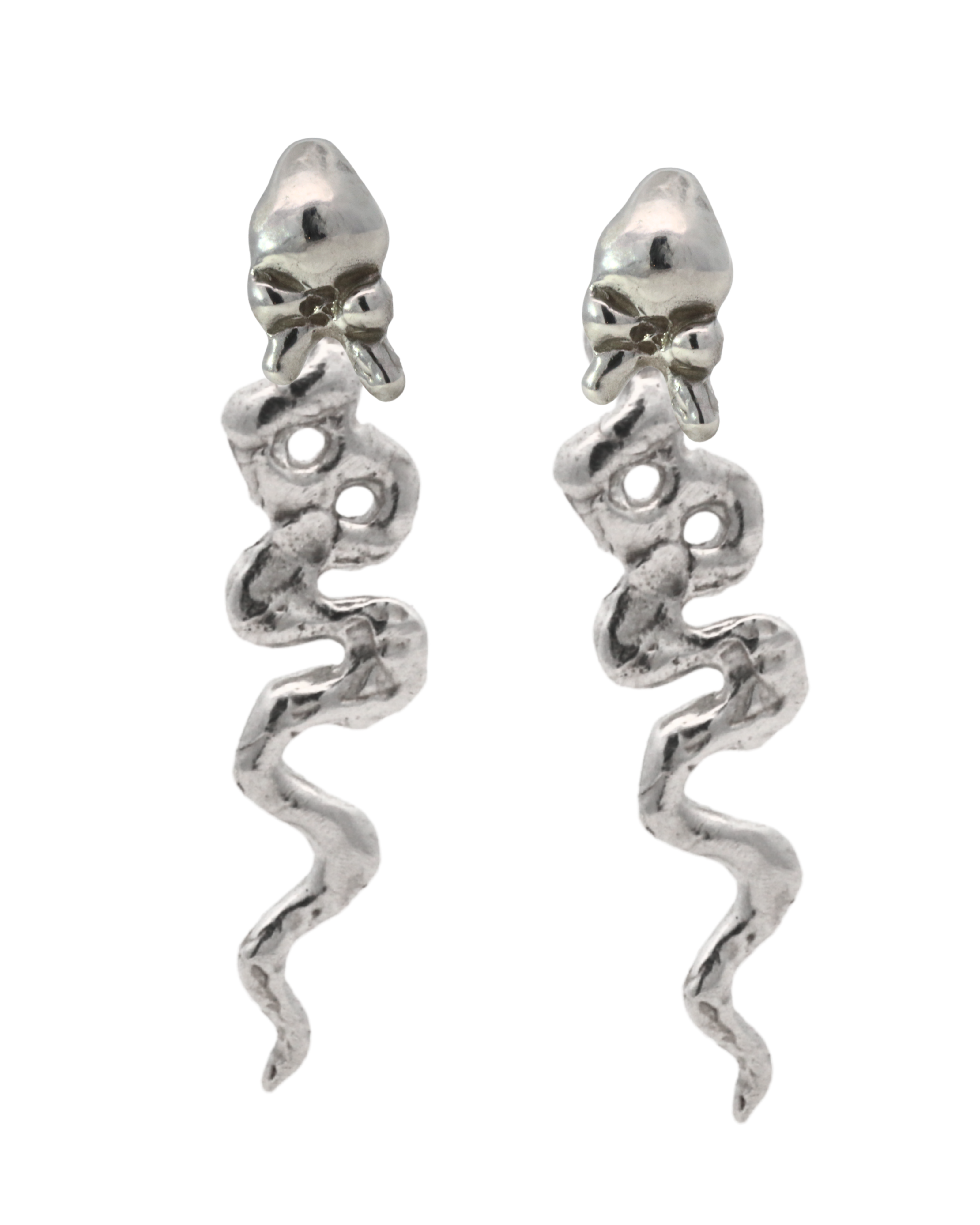 Snake swivel mobile stud earrings - sterling silver body and snake head with bowtie.
