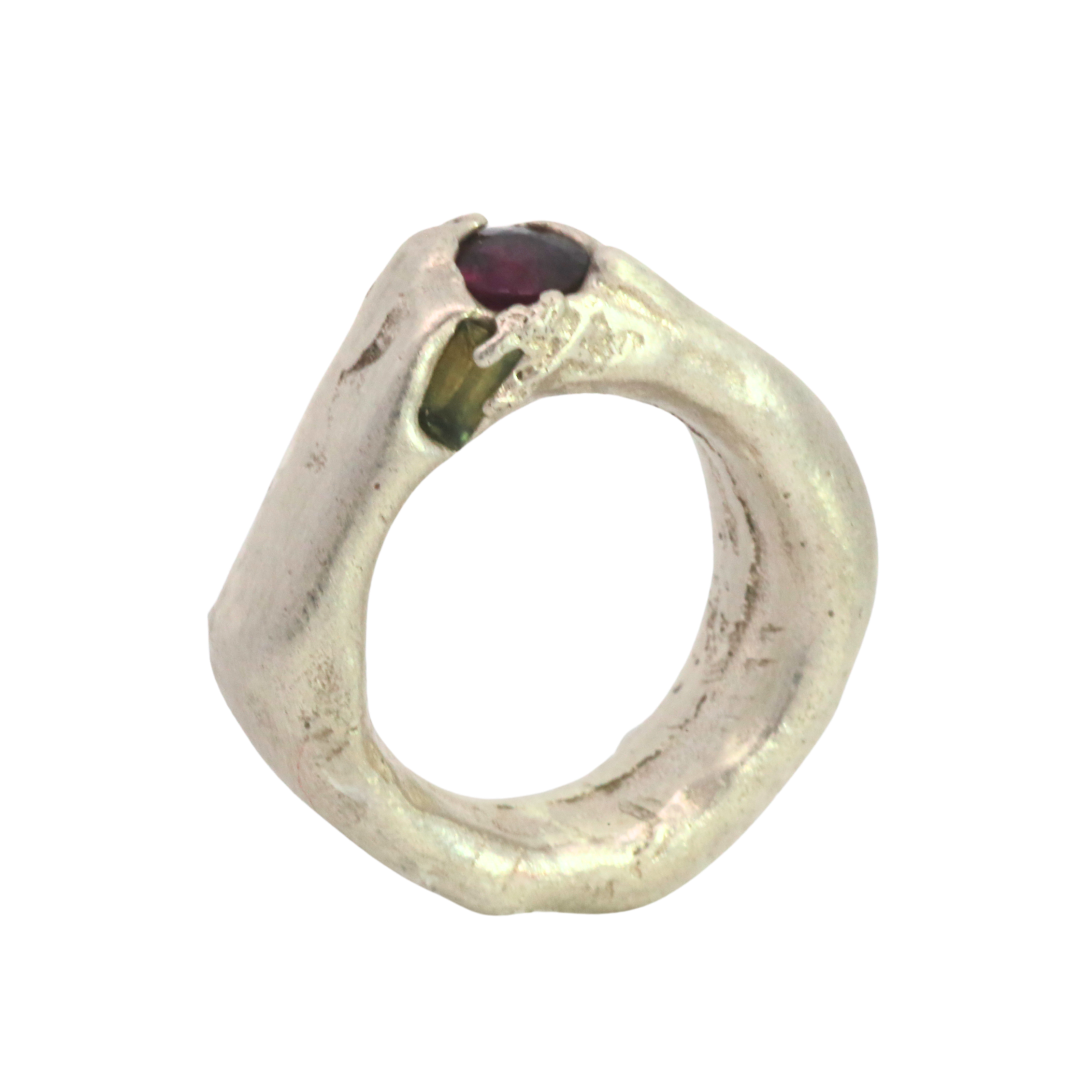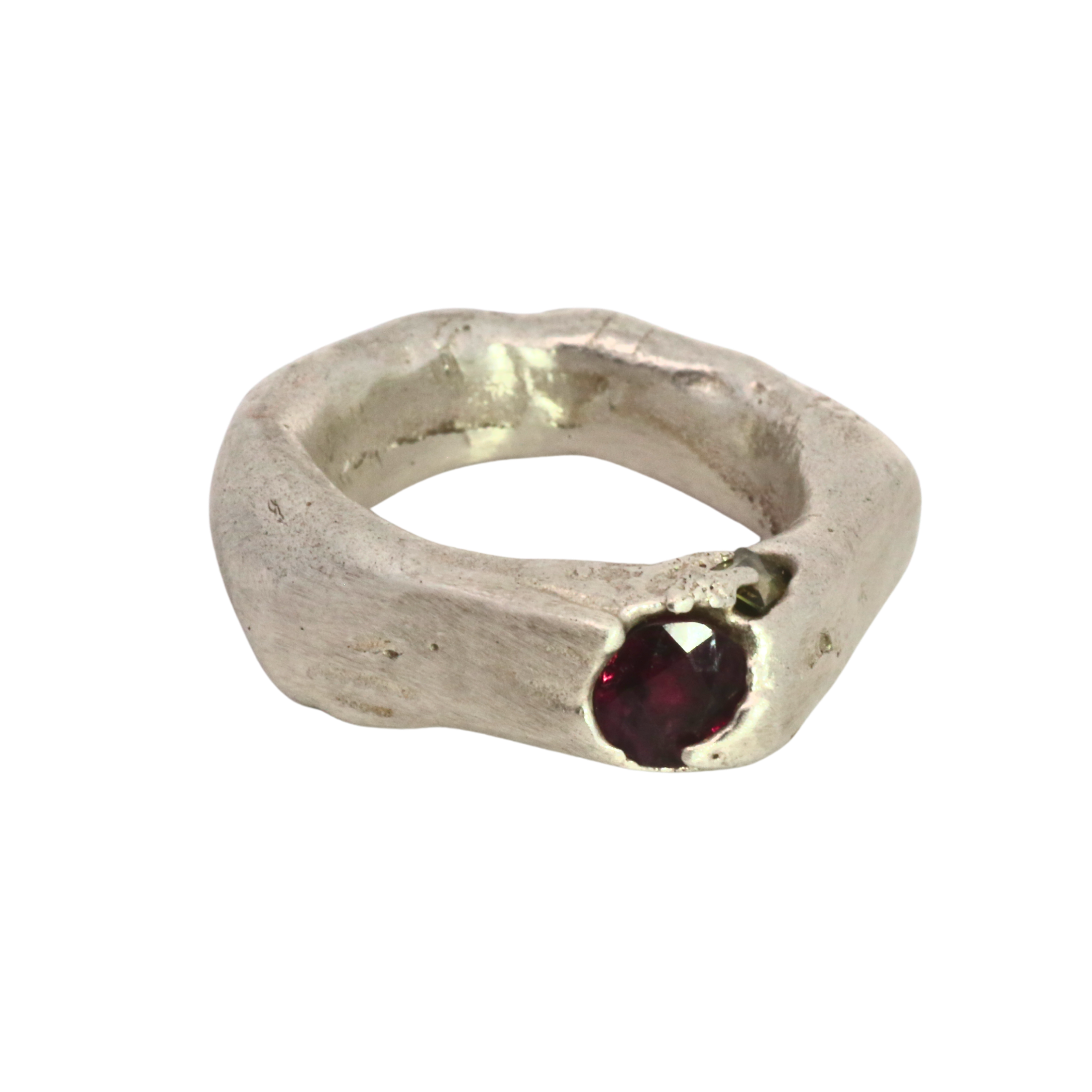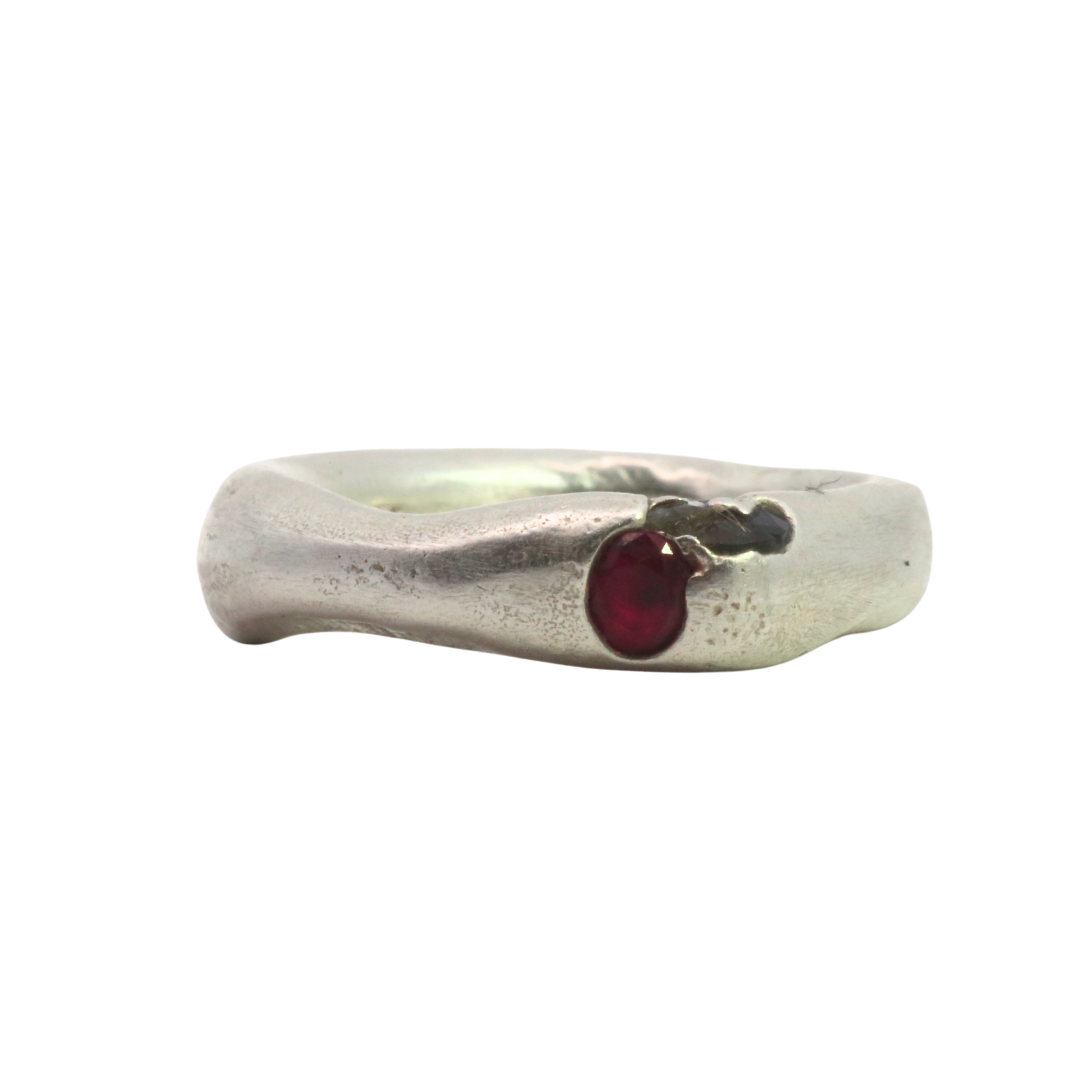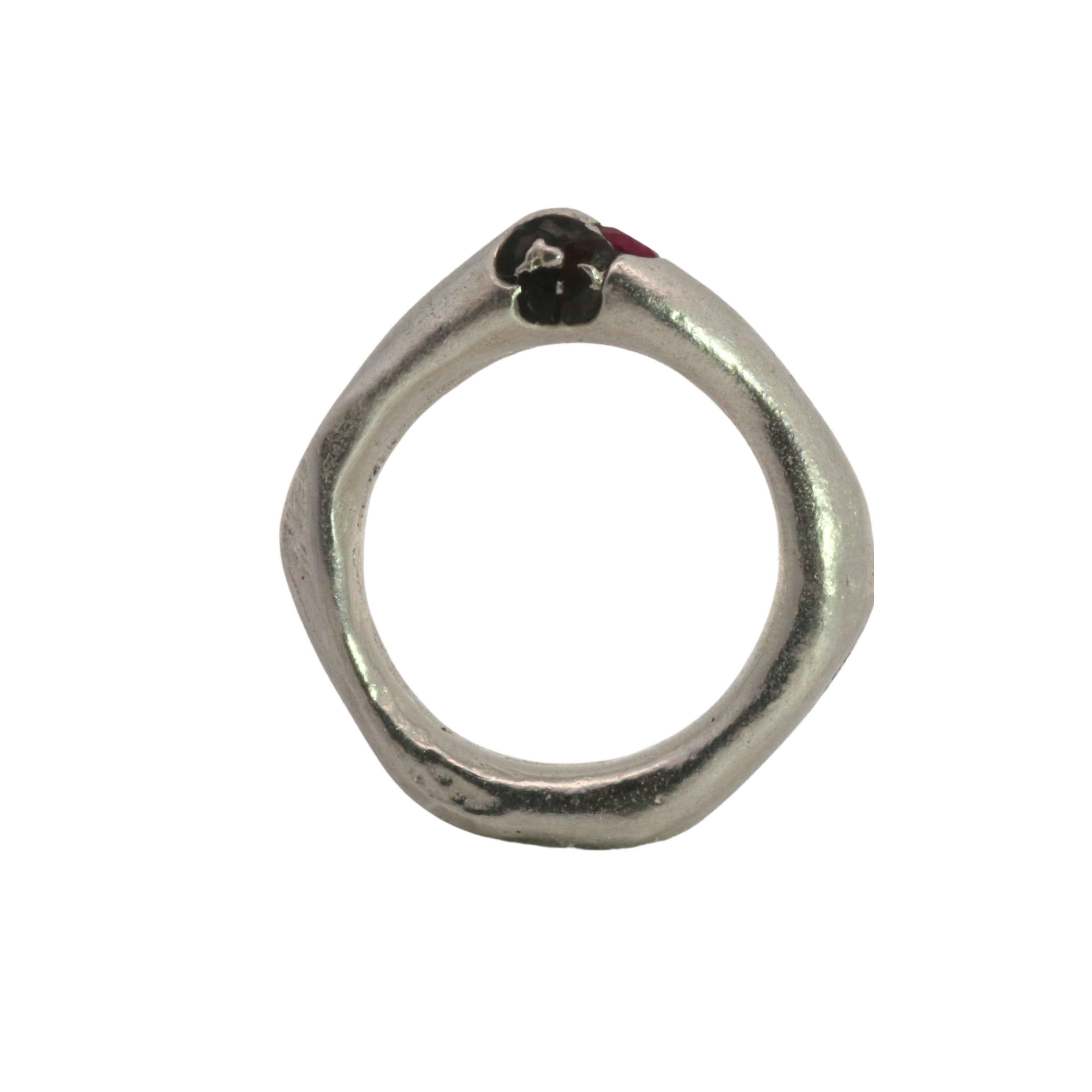 WILDER II Ring No. 012647 - Sterling Silver + Ruby, Garnet (shattered)