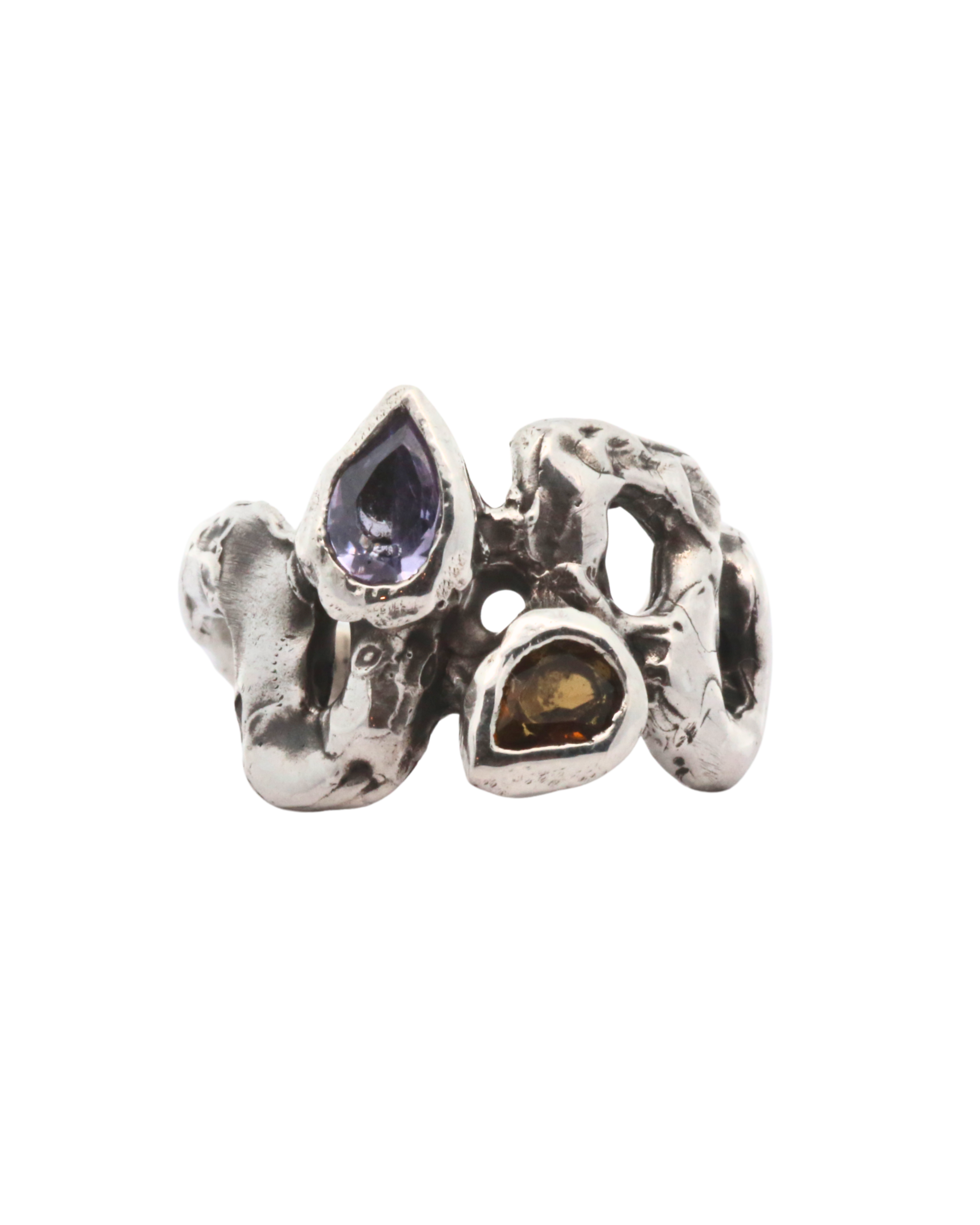 SNAKE Ring - Sterling Silver, Lavender Sapphire, Golden Tourmaline