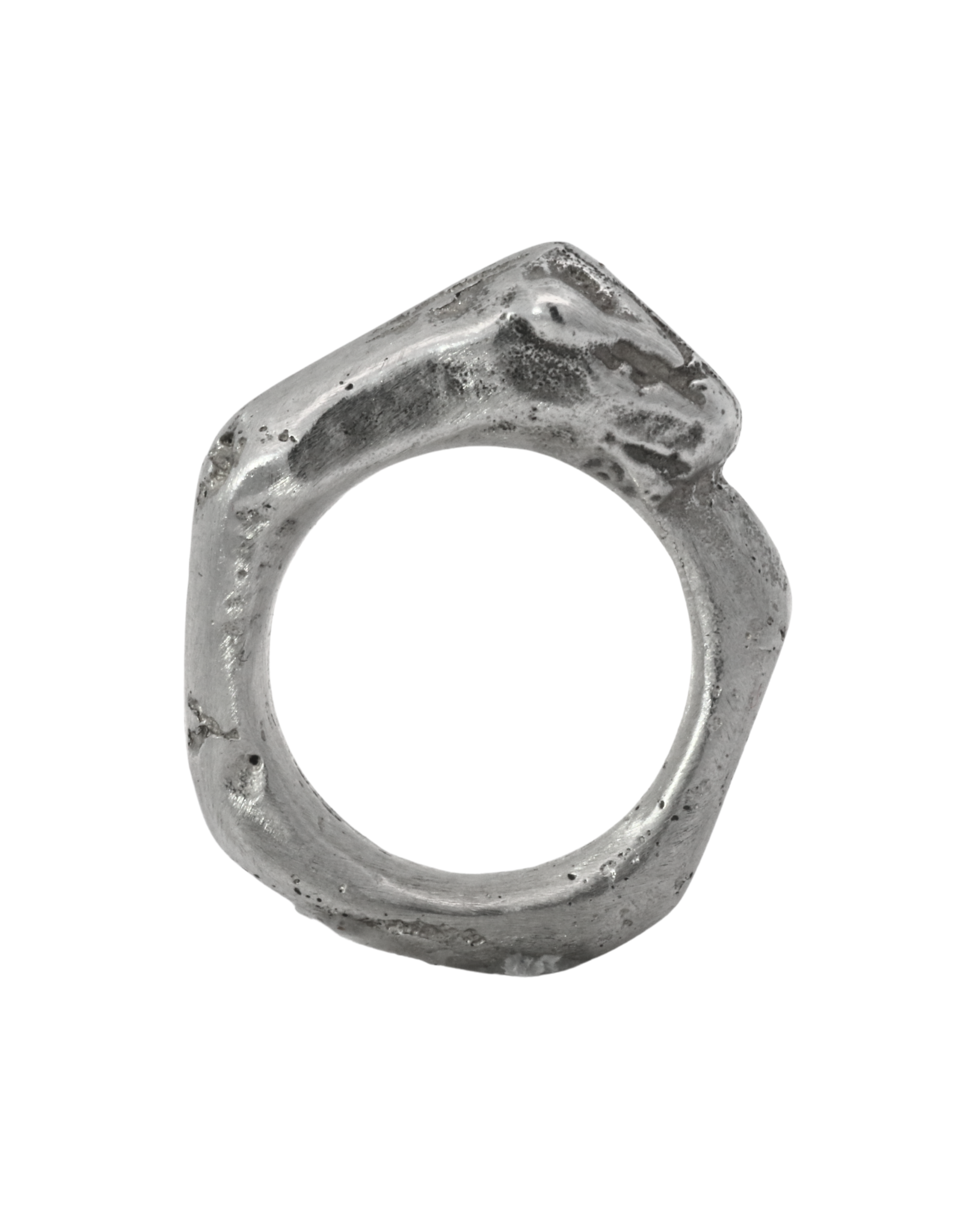 Big statement ring hand carved in wax and sand cast in recycled sterling silver.