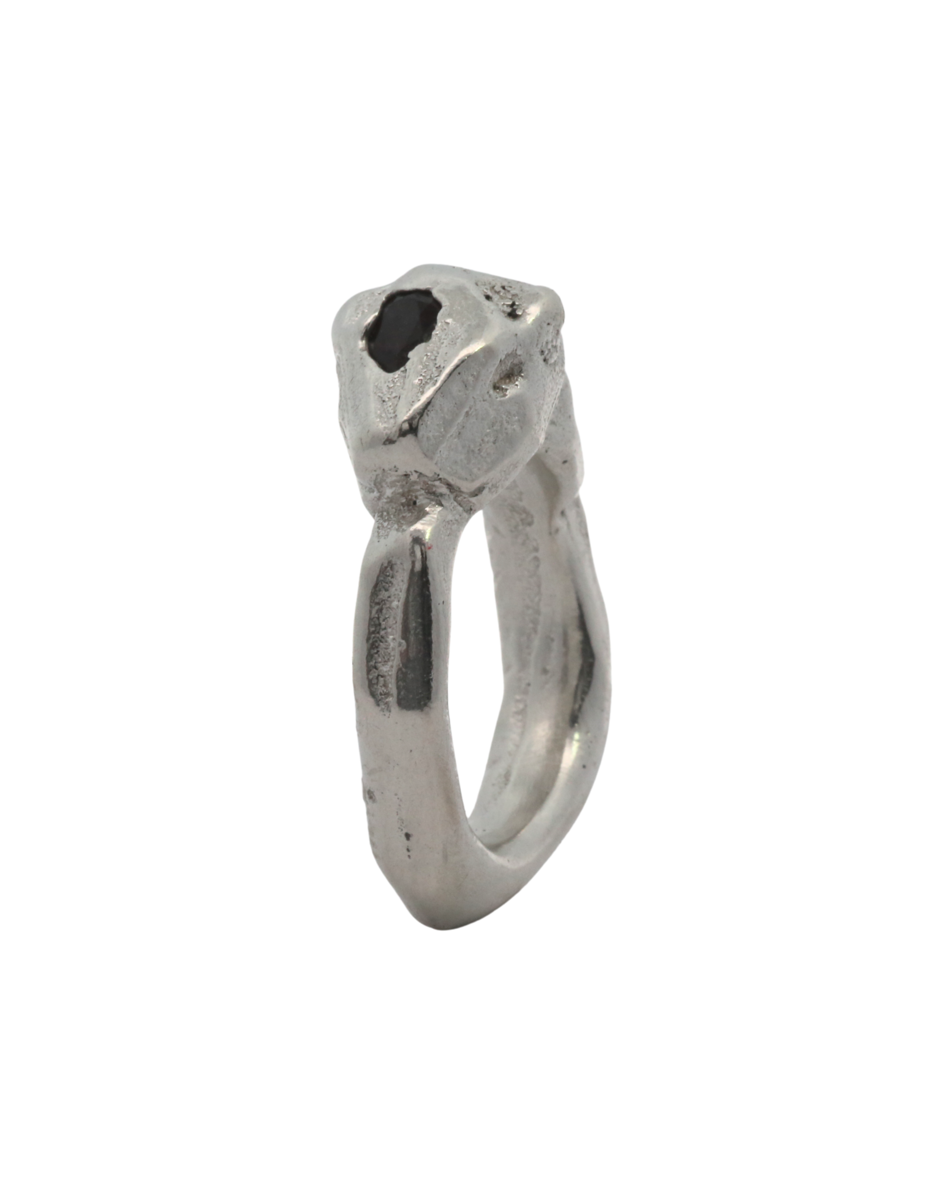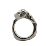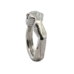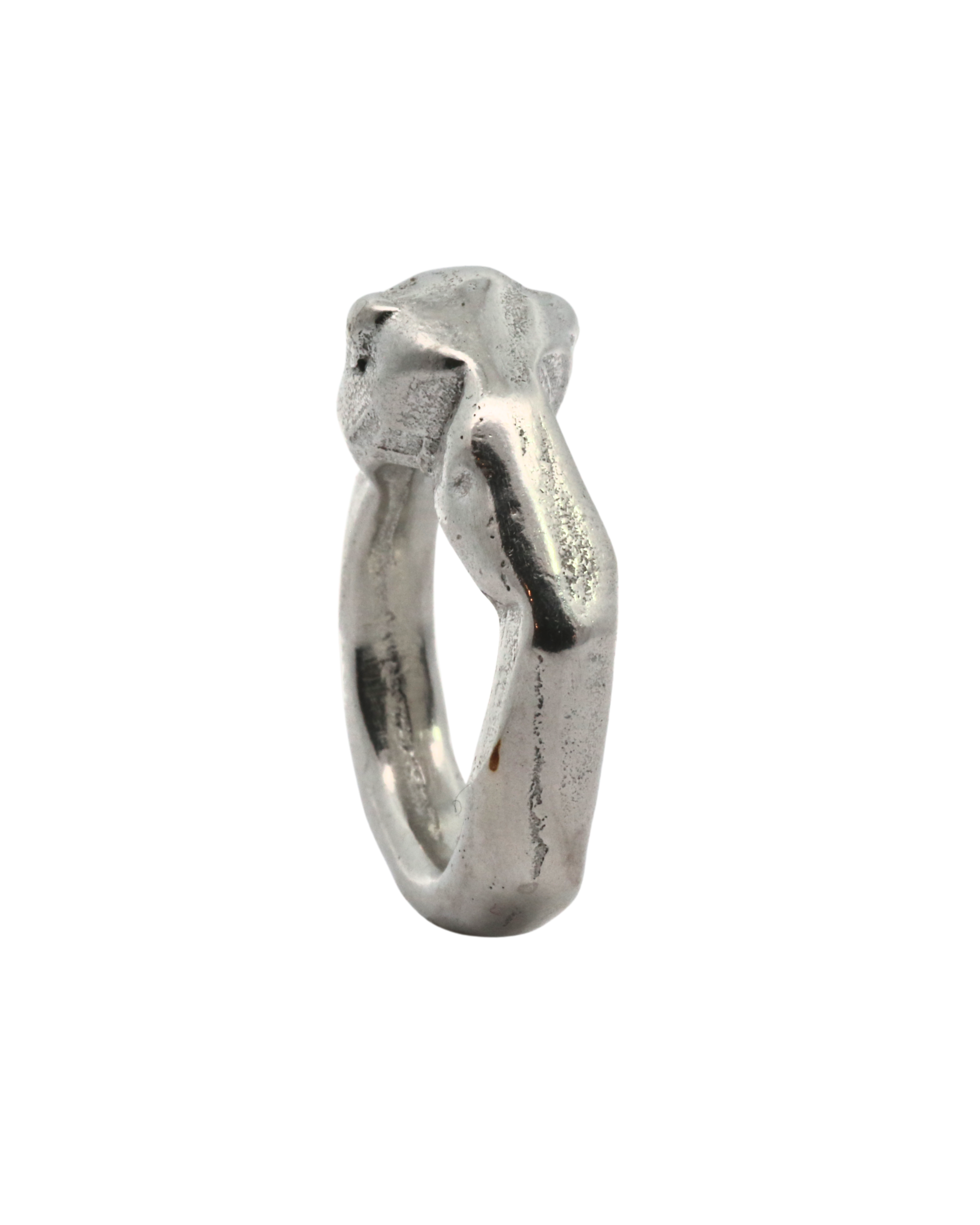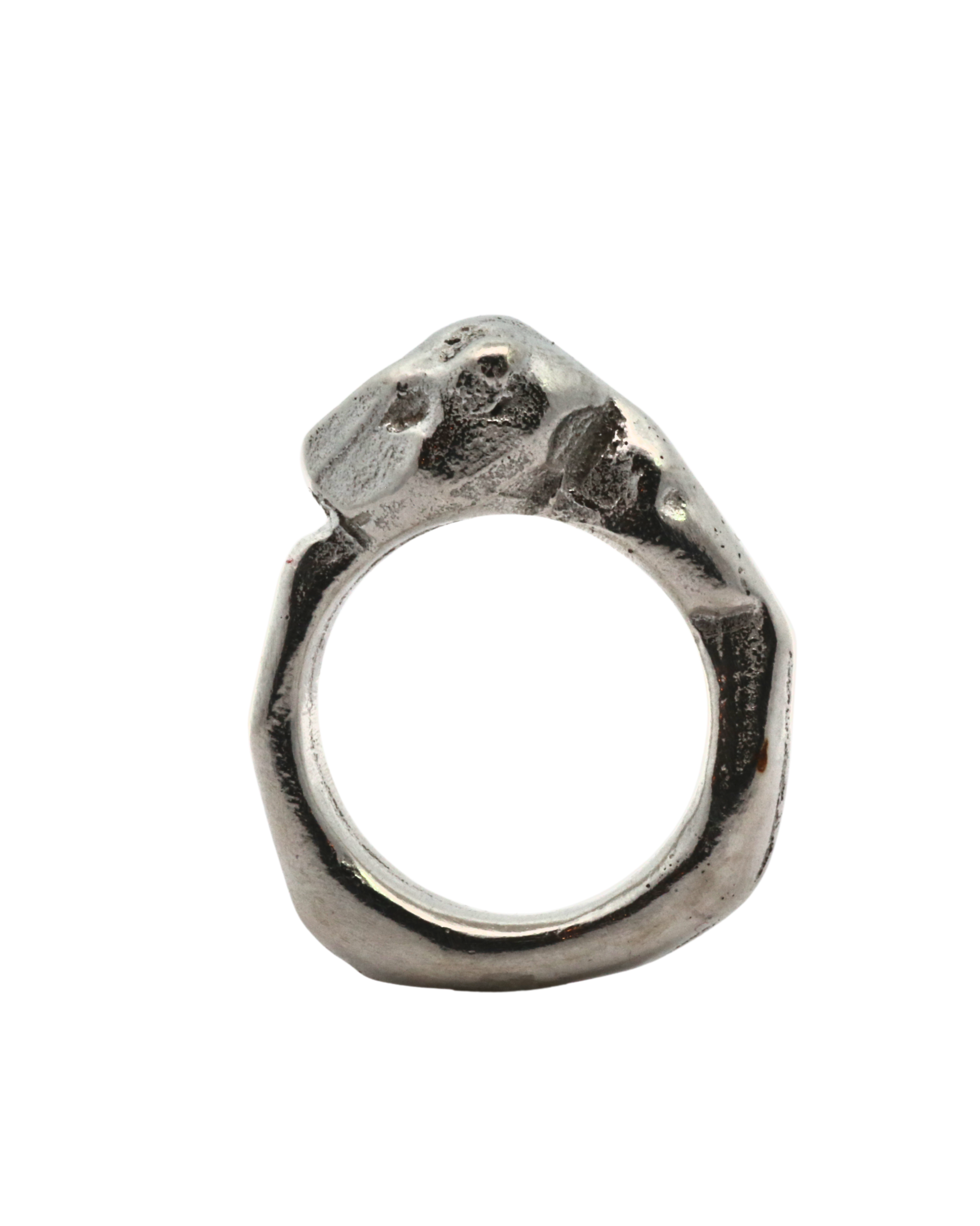 This collection of sand cast statement rings embraces the weight of metal and is solid sterling silver weighing approximately 17 grams.