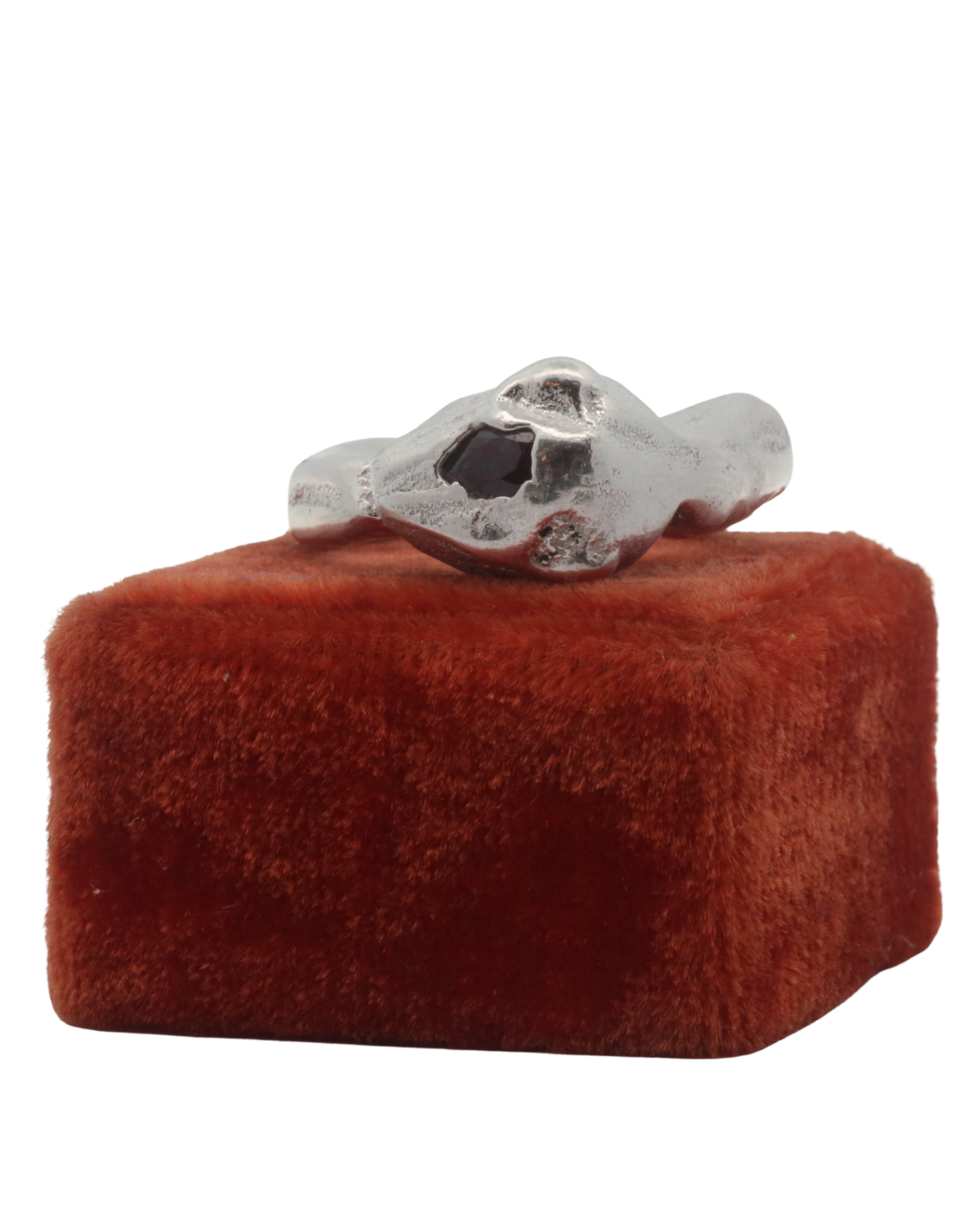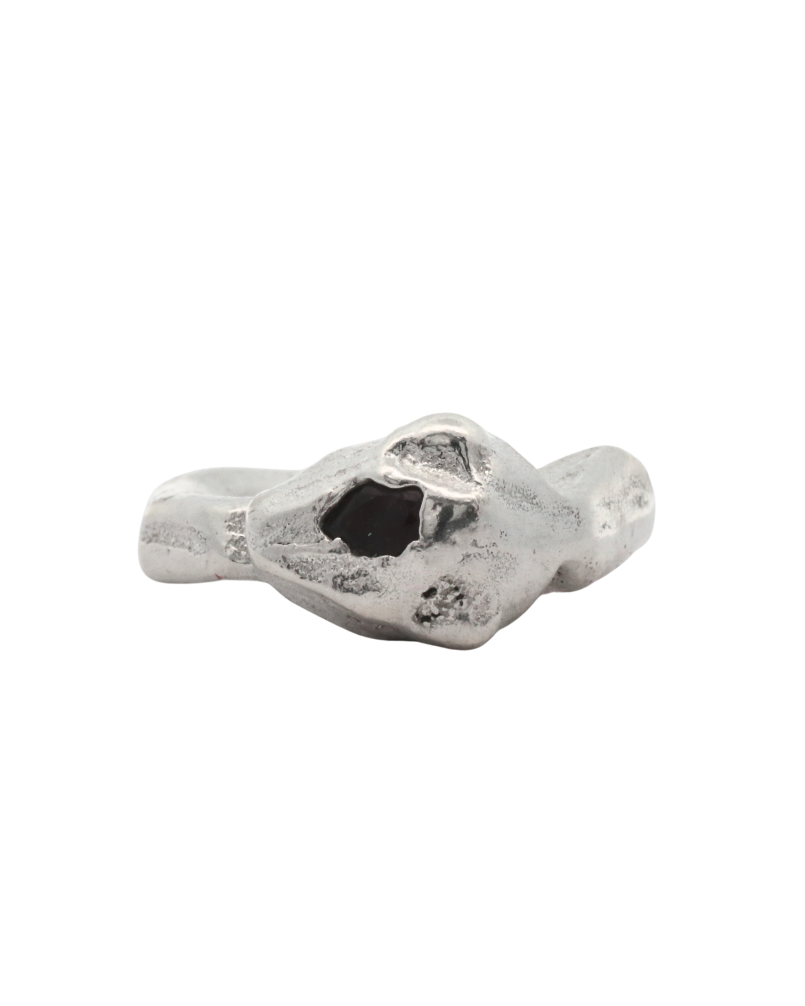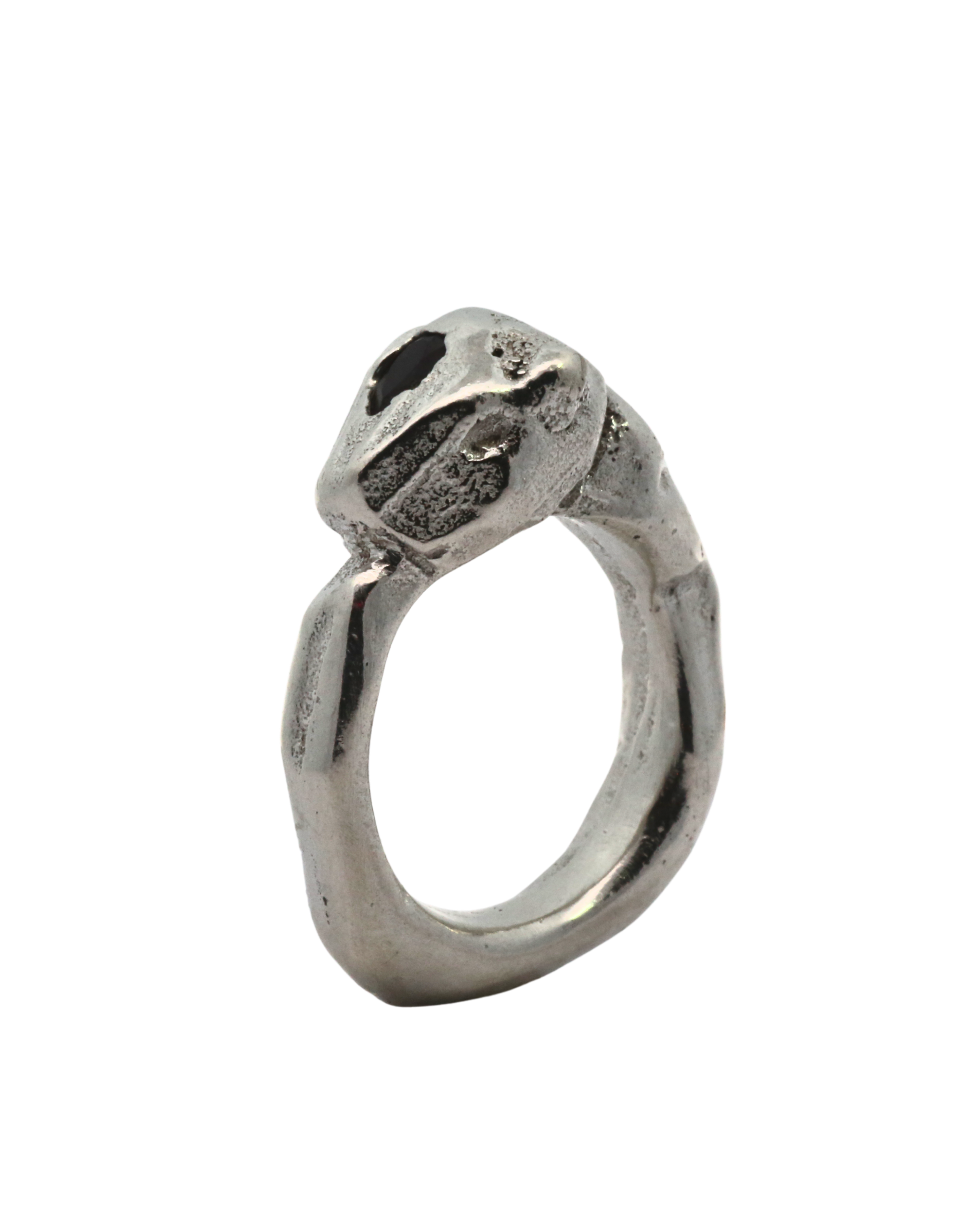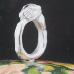 This collection of sand cast statement rings embraces the weight of metal and is solid sterling silver weighing approximately 17 grams.