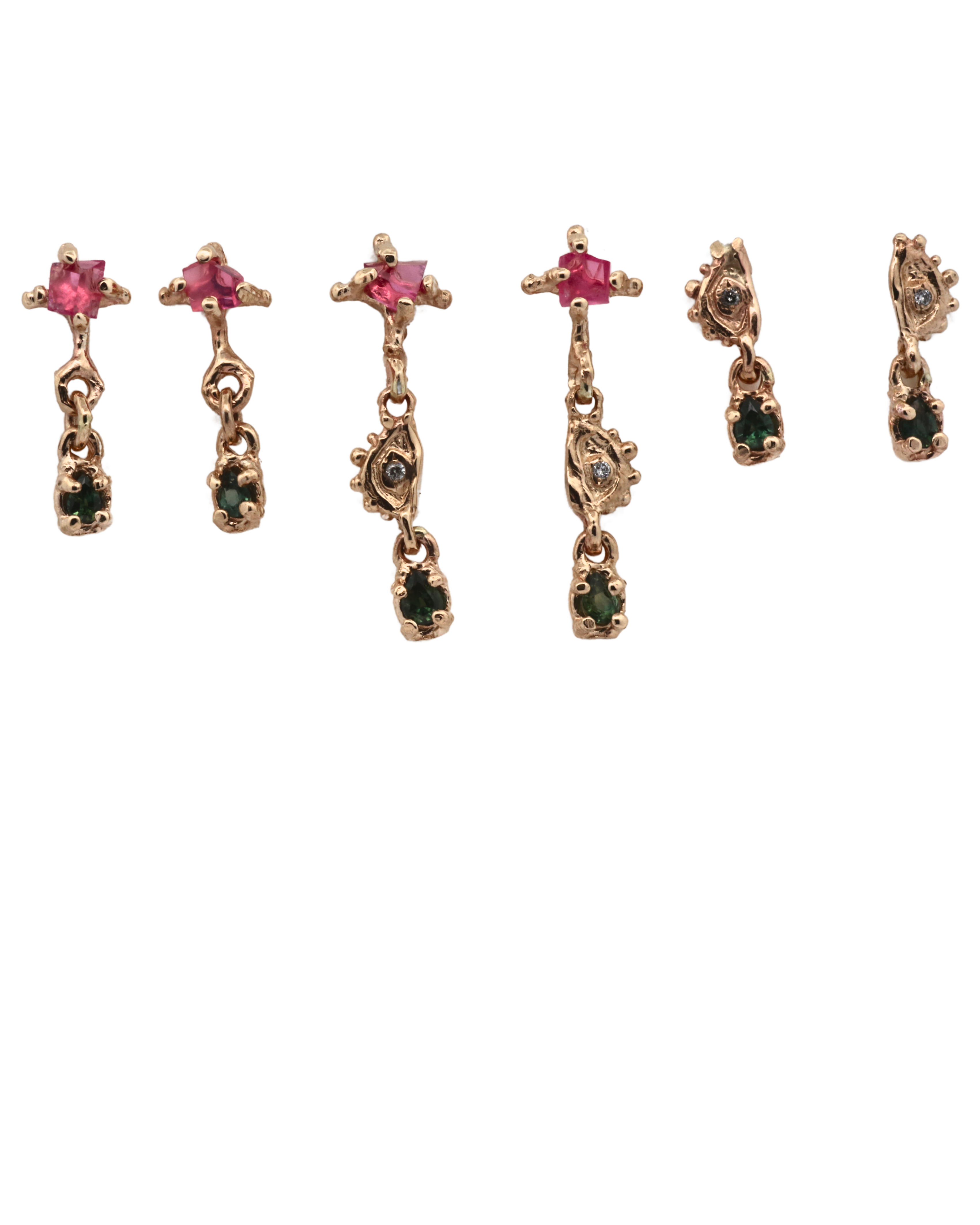 Crying eyes stud earrings with dotted halo lashes and bead set diamonds and falling sapphire tears.