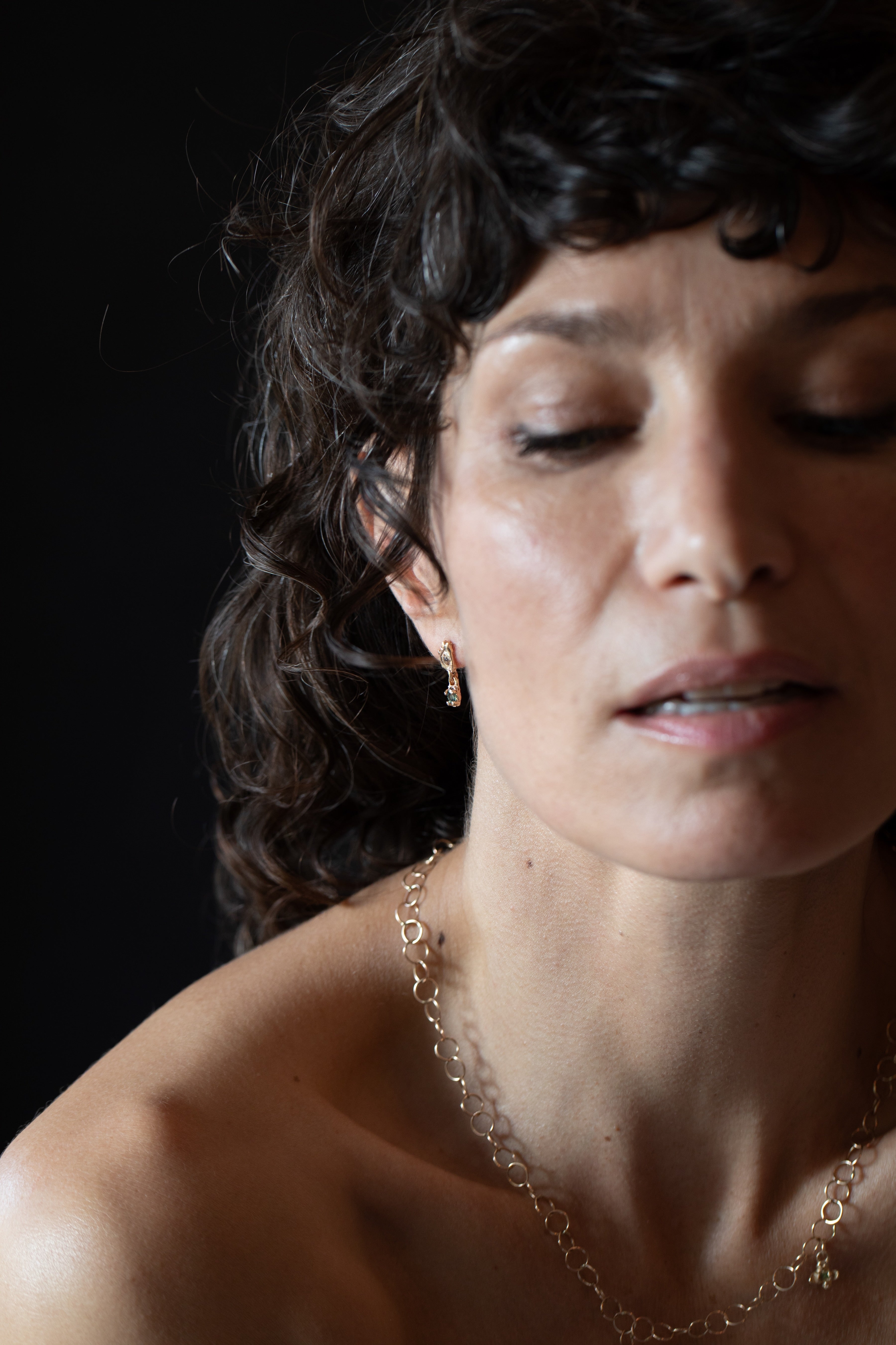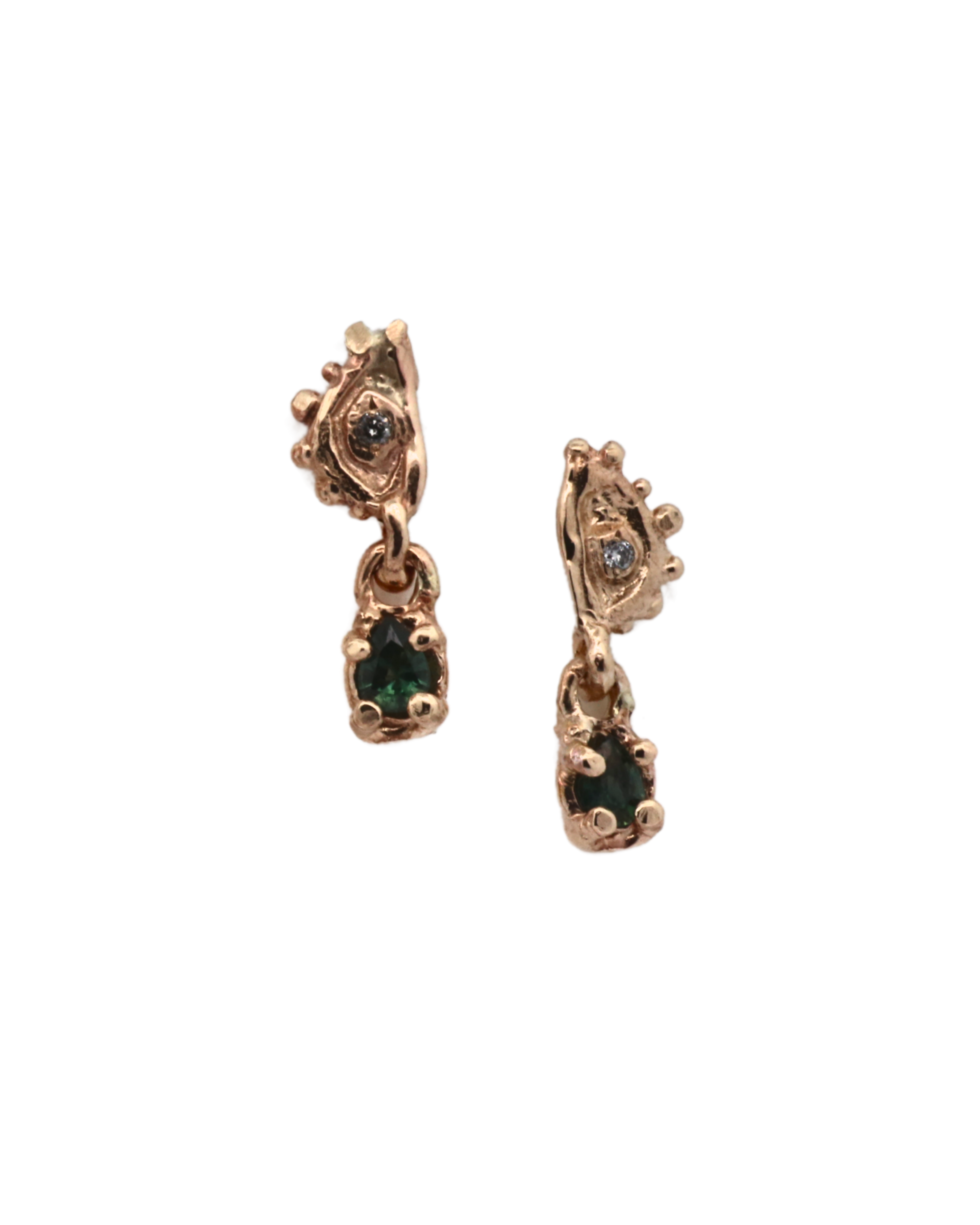 Hand-carved and lost wax cast in 14K Fairmined gold with bead champagne diamonds. Choose single or pair.