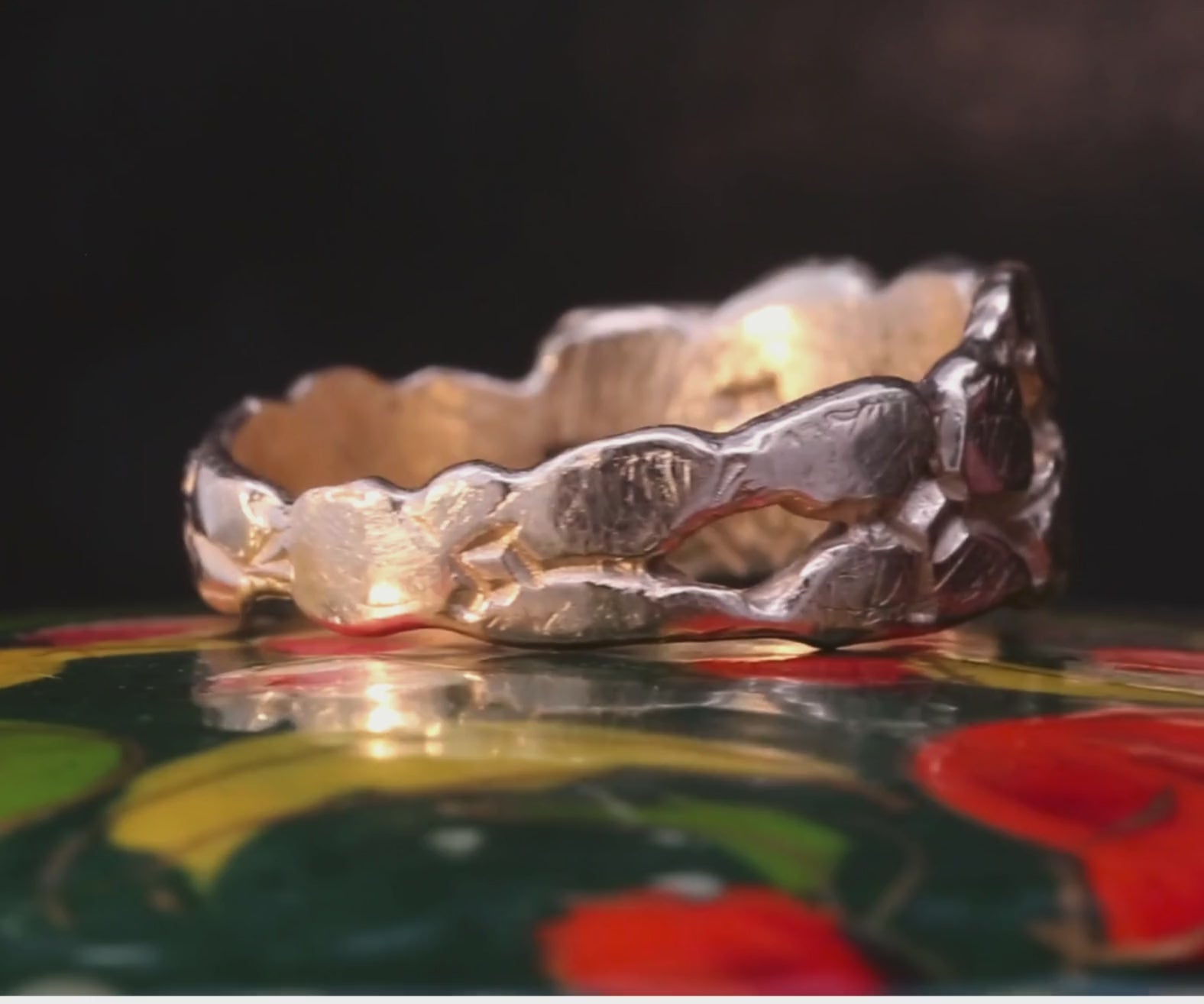 Hand carved and lost wax cast in 14K Fairmined gold.