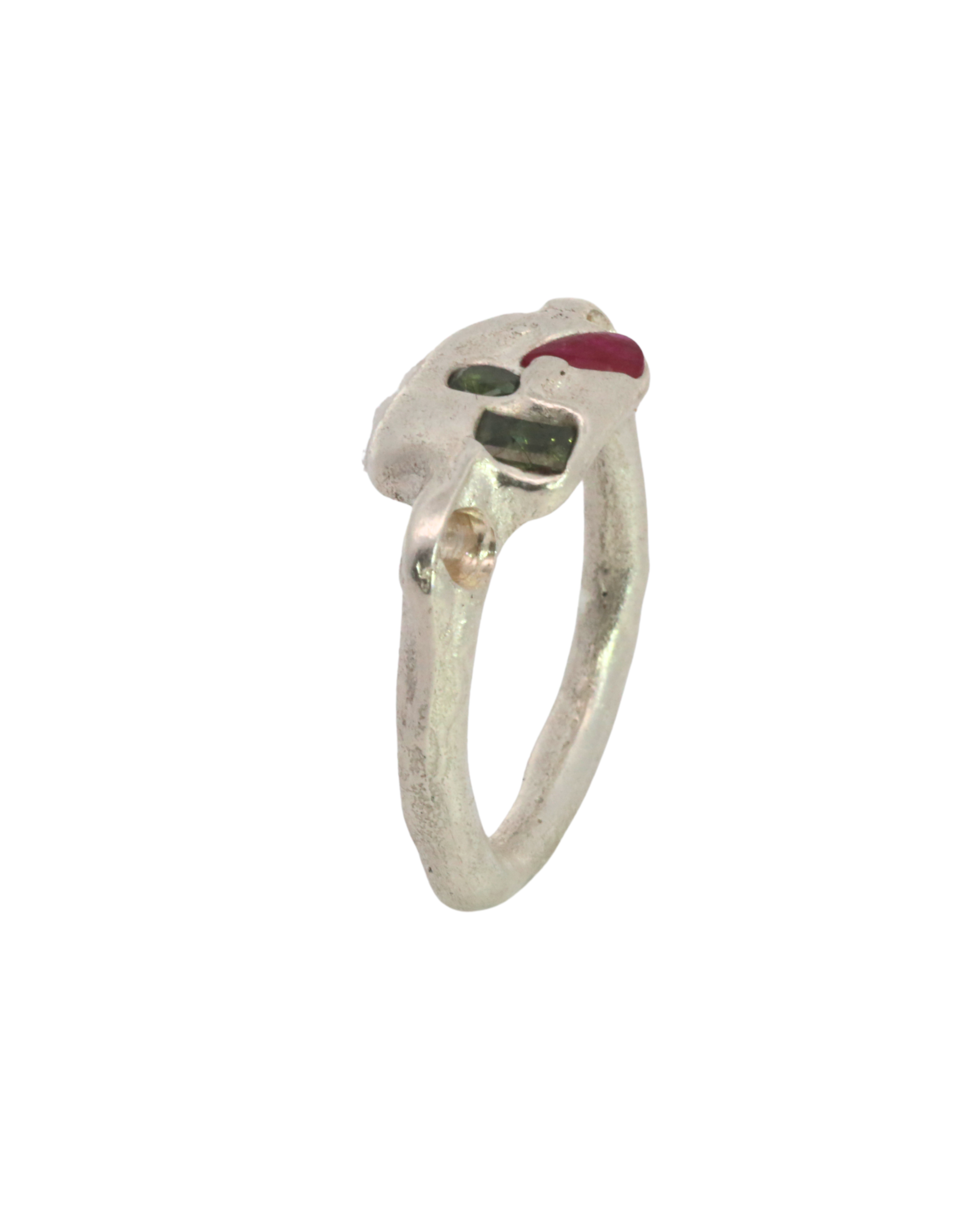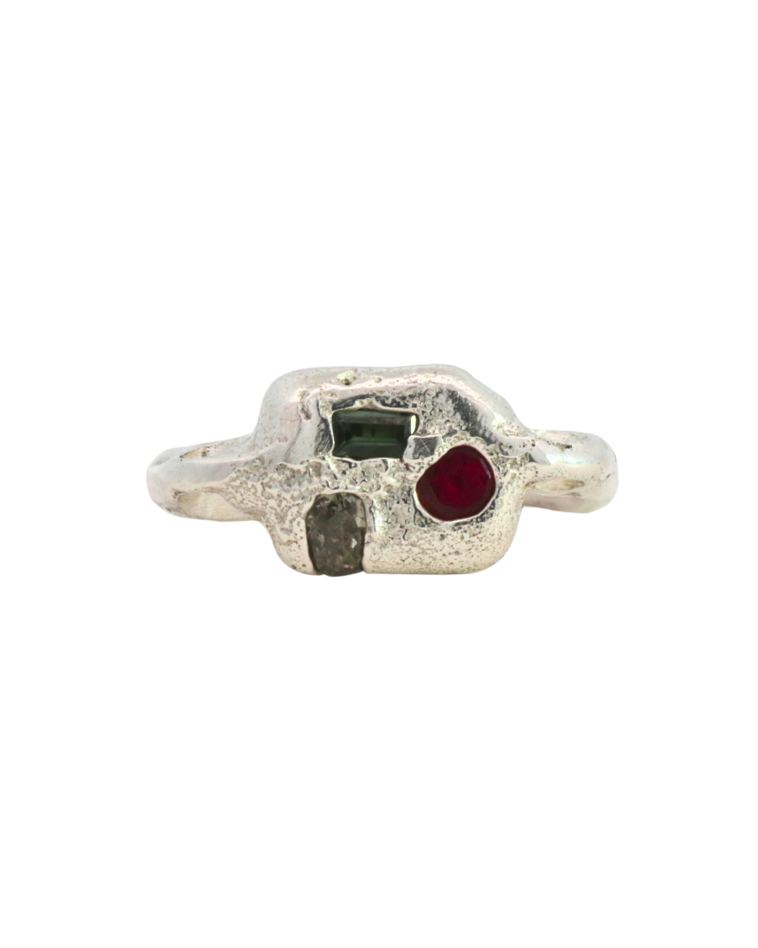 SEB Pinky Ring No.012644 - Sterling Silver + Diamond, Ruby, Sapphire